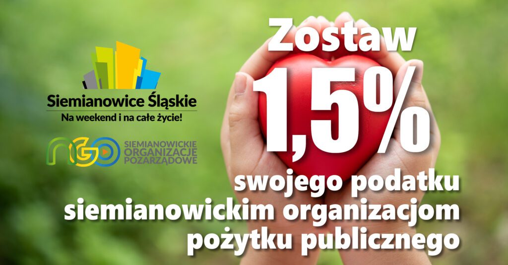 Przekazując 1,5% podatku na organizacje działające w Siemianowicach Śląskich, wspierasz realne inicjatywy w swoim najbliższym otoczeniu. To pomoc dla działań lokalnych dla naszych mieszkańców: dzieci, seniorów, osób z niepełnosprawnościami, sportowców i wspierania ciekawych społecznych projektów, które zmieniają nasze Siemianowice Śląskie na lepsze.