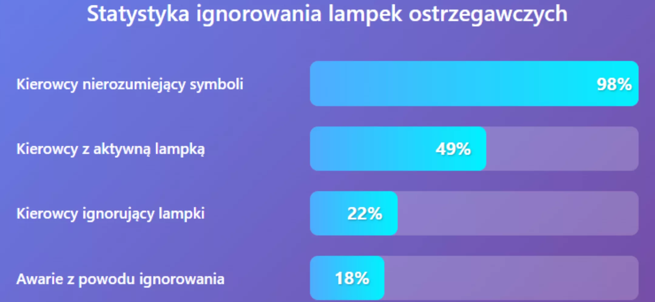 Skala problemu jest poważniejsza niż mogłoby się wydawać. Poniższy wykres pokazuje alarmujące dane z międzynarodowych badań dotyczących zachowań kierowców wobec lampek ostrzegawczych.