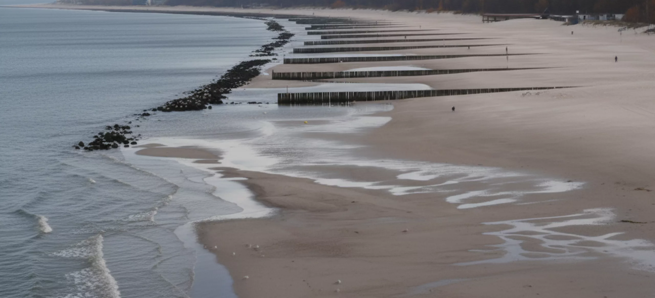 Świnoujście 05/10/2025 Silny wiatr z południa przyniósł w ten weekend nad polskie wybrzeże zjawisko, które zawsze wzbudza ogromne emocje. Morze Bałtyckie cofnęło się o kilkadziesiąt metrów, odsłaniając dno, drewniane ostrogi, kamienie i podwodne konstrukcje chroniące brzegi przed erozją. Plaże w wielu miejscowościach wyglądają dziś zupełnie inaczej niż zwykle — szerokie, suche, pełne niespotykanych wcześniej form i struktur.