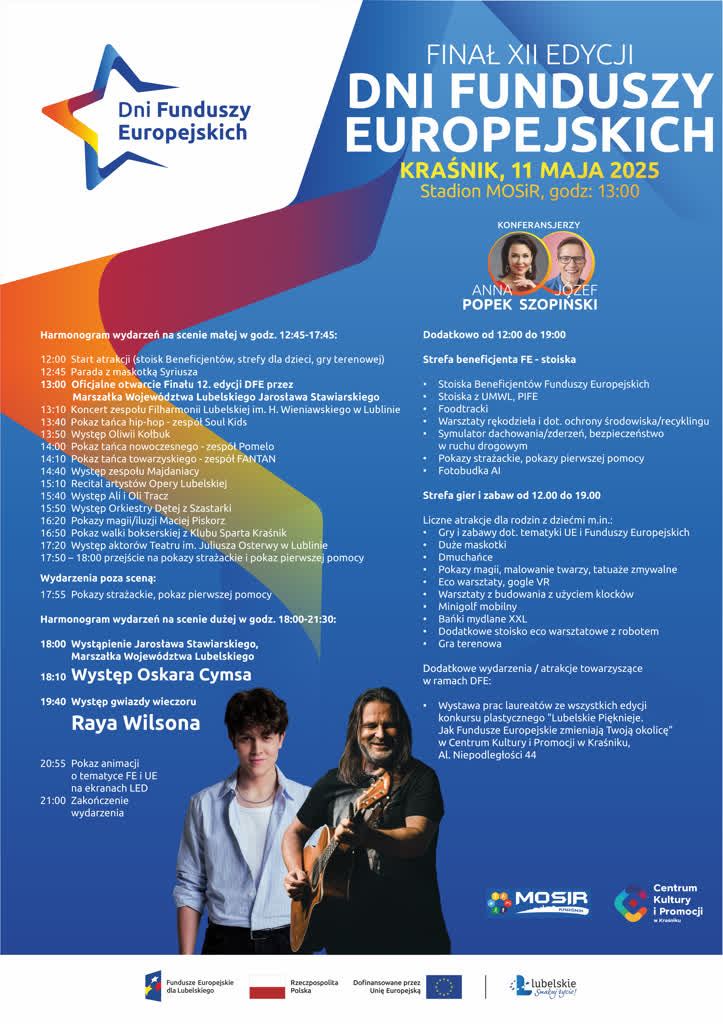 W Kraśniku zaplanowano Finał Dni Funduszy Europejskich. Impreza odbywa się w związku z obchodzonym 9 maja Dniem Europy, a celem jest pokazanie, jak województwo lubelskie rozwija się dzięki Funduszom Europejskim.
