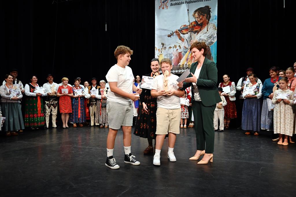 Wyróżnienia i nagrody pieniężne po 1000 zł każda ufundowane przez Ministerstwo Kultury i Dziedzictwa Narodowego – „Dolina Słomki” ze Stronia za bogactwo zabaw oraz adekwatne ubiory dziecięce; „Korpiołki” ze Skomielnej Białej za prezentację programu ukazującego scenki obyczajowe wsi oraz walory aktorskie; „Czerwone Korale” z Pisarzowej za interesujące widowisko przybliżające historię Pisarzowej; „Mali Pcimianie” z Pcimia za zabawy dziecięce i estetyczne ubiory dziecięce; „Cyrniawa” z Krzeczowa za zabawy i staranny ubiór dziecięcy; „Zasadnioki” z Zasadnego za taniec, muzykę oraz estetyczne ubiory; „Mali Przyszowianie” z Przyszowej za elementy folkloru dziecięcego i śpiew grupowy.
