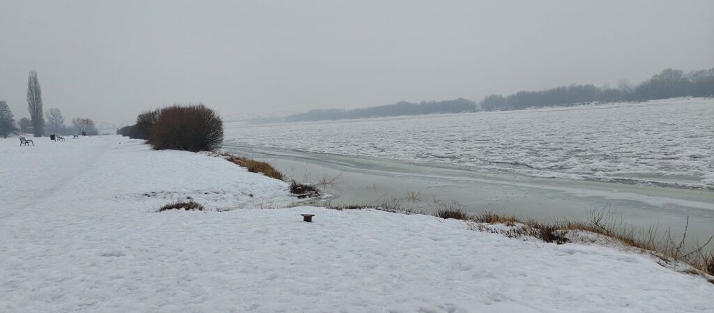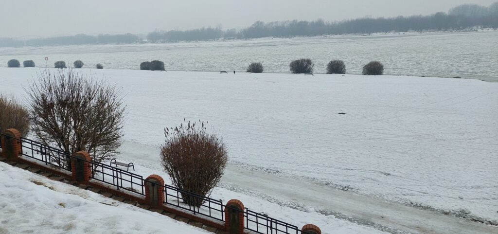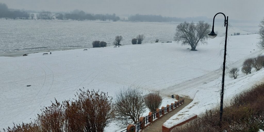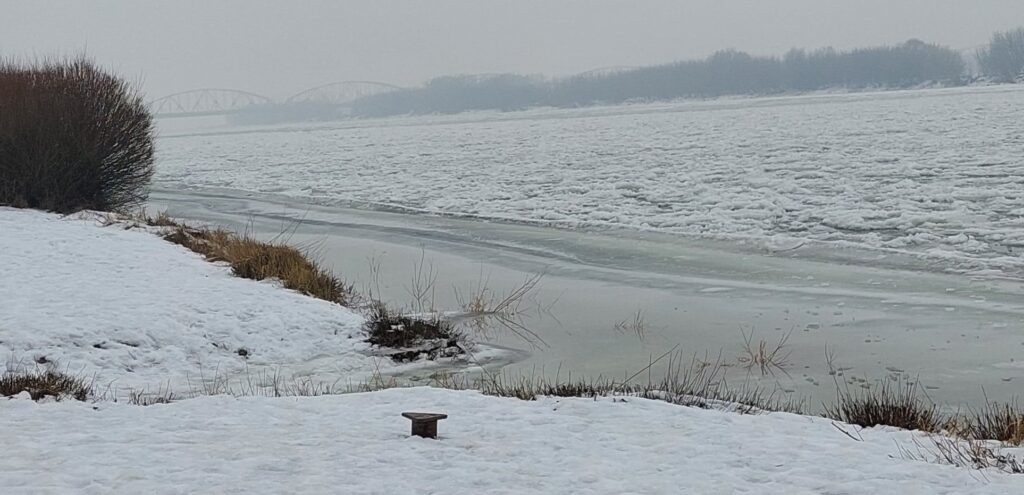 Bezkresna biel na błoniach nadwiślańskich w Grudziądzu, Wisła skuta lodem. Niesamowita, zimowa sceneria (zdjęcia)