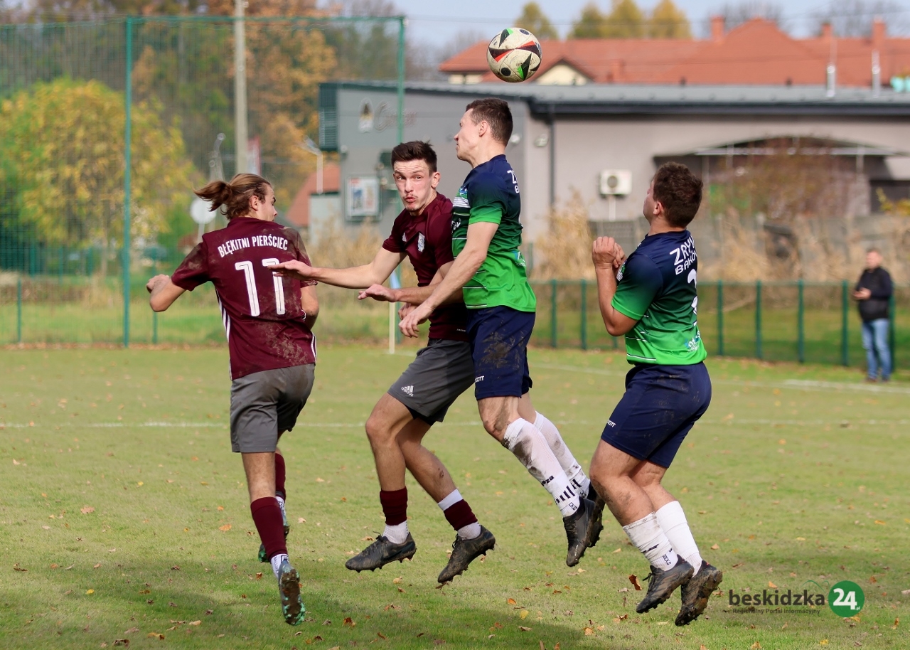 W rozegranym awansem meczu 13. kolejki skoczowskiej klasy A Błękitni Pierściec podejmowali Zryw Bąków. Gospodarze wygrali 4:0 i zasiedli w fotelu lidera tabeli, na którym pozostaną przynajmniej do przyszłego weekendu.