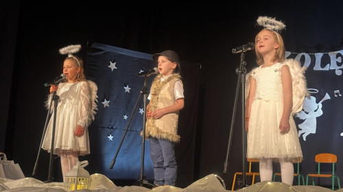 Wczoraj w Domu Kultury odbył się radosny przegląd piosenek świątecznych przygotowany przez nauczycielki z Przedszkola Publicznego nr 3 w Środzie Śląskiej, Aleksandrę Rułę i Annę Dwornicką. Zgromadzonych gości i uczestników powitała dyrektor przedszkola.