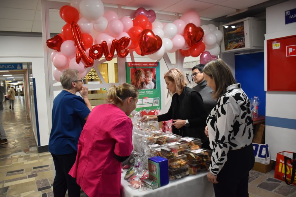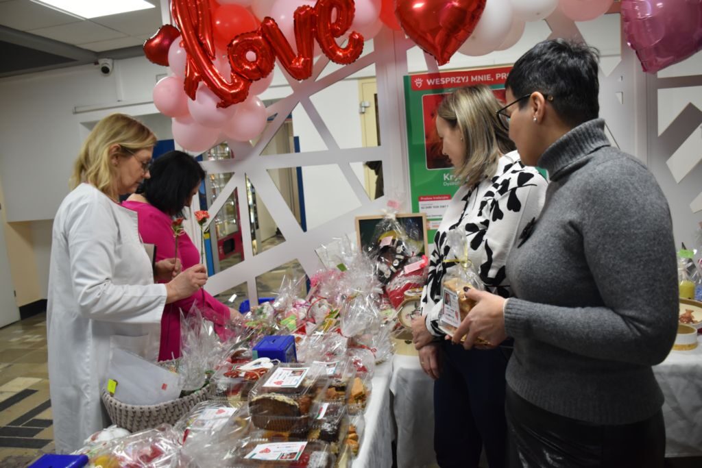 Smaczne domowe ciasta i ciasteczka, piernikowe serduszka, świece zapachowe, kompozycje kwiatowe oraz walentynkowe ozdoby – wszystko to można było kupić podczas kiermaszu zorganizowanego dziś w holu Szpitala Powiatowego w Brzesku.