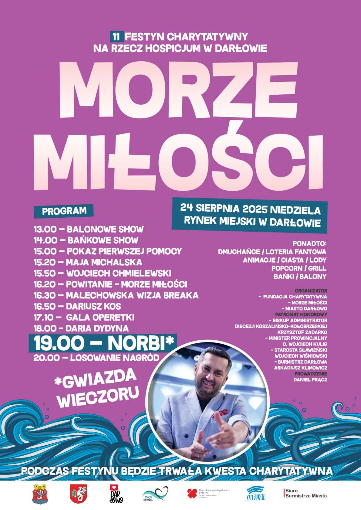 Już 24 sierpnia (niedziela) zapraszamy na jedenastą edycję Festynu Charytatywnego „Morze Miłości”. Będziemy mogli wspólnie kwestować, bawić się, a to wszystko podyktowane jest ogromną potrzebą wsparcia dla tak ważnego miejsca jakim jest Dom Hospicyjno-Opiekuńczy Caritas im. Biskupa Czesława Domina w Darłowie. W festynowym miasteczku znajdziecie m.in.: ogromne dmuchańce, loterię fantową, a także bogatą strefę gastronomiczną z ciastami, watą, popcornem, grillem, rybami i innymi smacznymi atrakcjami.