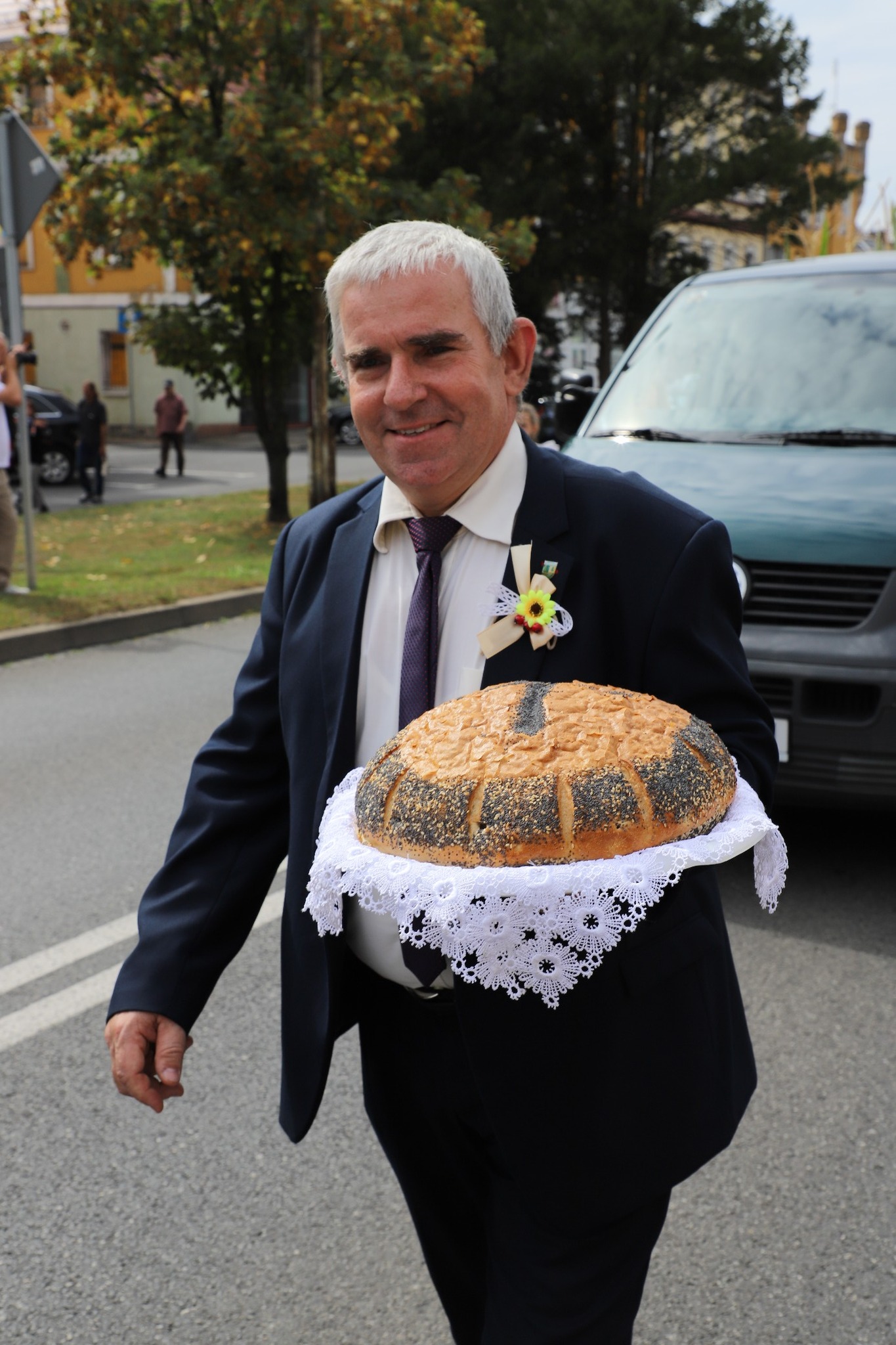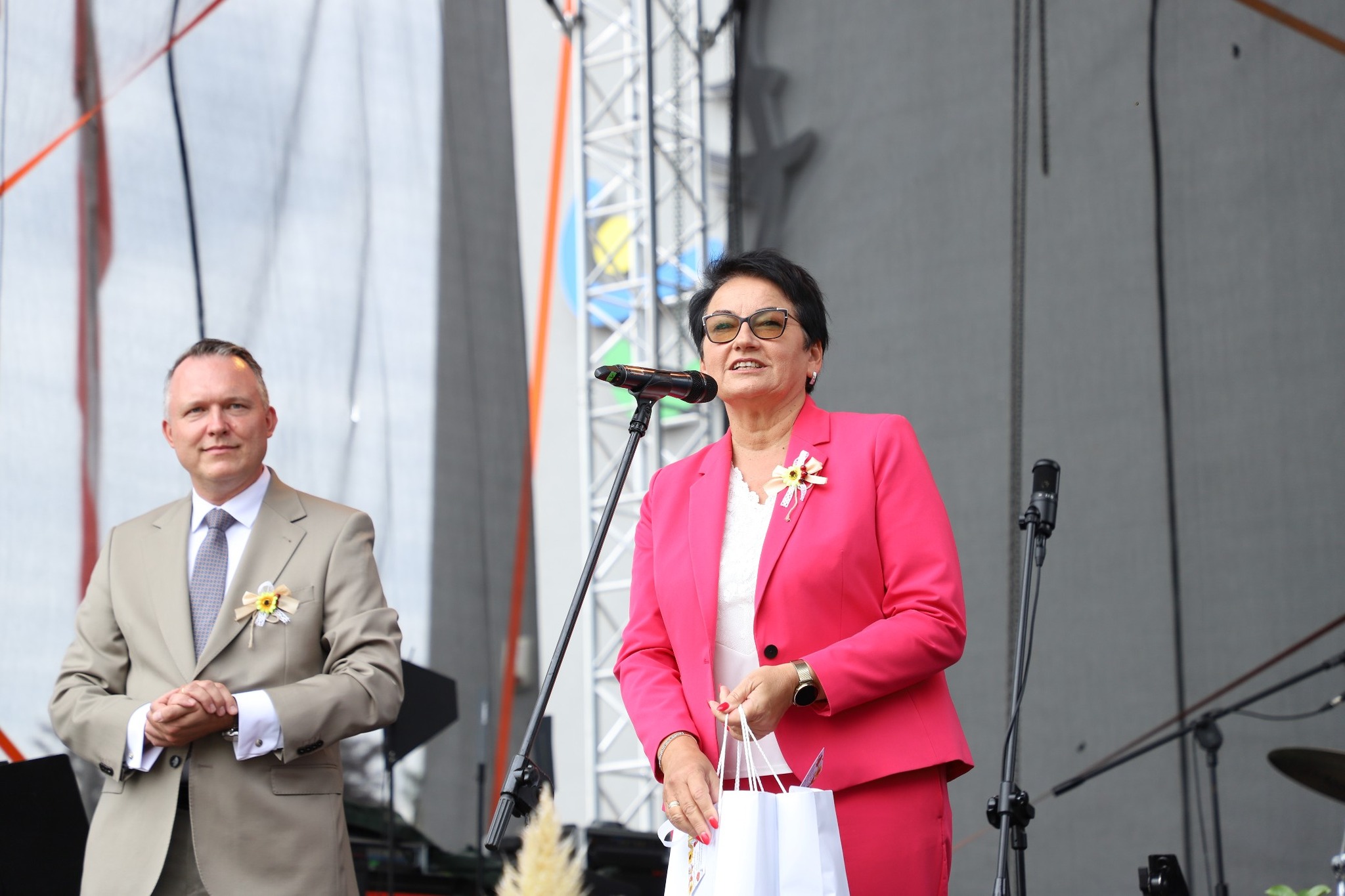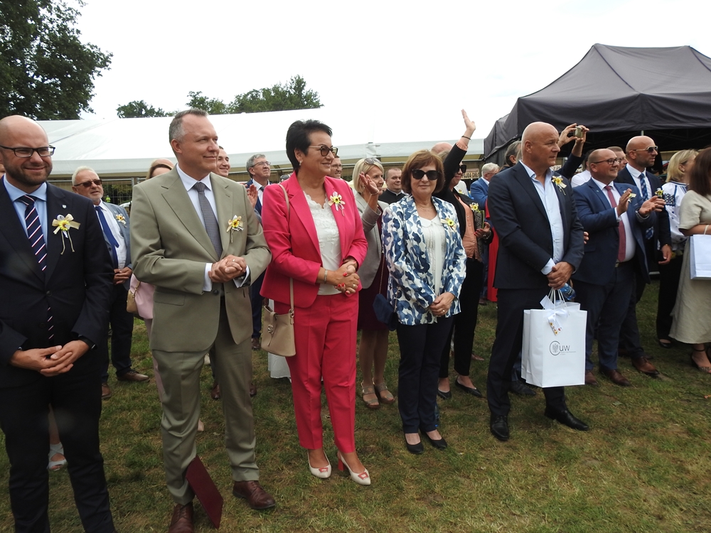 – No taki okres, mamy końcówkę sierpnia, więc każda gmina, każdy powiat organizuje swoje dożynki, za tydzień nasze dożynki wojewódzkie. Ale dzisiaj faktycznie w wyjątkowym miejscu, bo w Niemodlinie. To gmina, która wyjątkowo dużo dobrych produktów tradycyjnych dostarcza – od owoców i warzyw, przez przepyszne wyroby cukiernicze, aż po znanego w całej Polsce najlepszego karpia z Niemodlina. Dziękujemy rolnikom i producentom rolnym za całoroczną pracę, ale mówimy też: myśl globalnie, kupuj lokalnie. To gwarancja zdrowego i świeżego produktu.