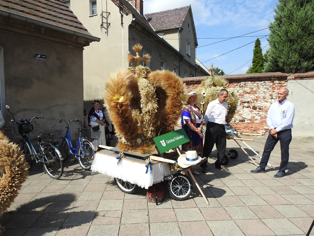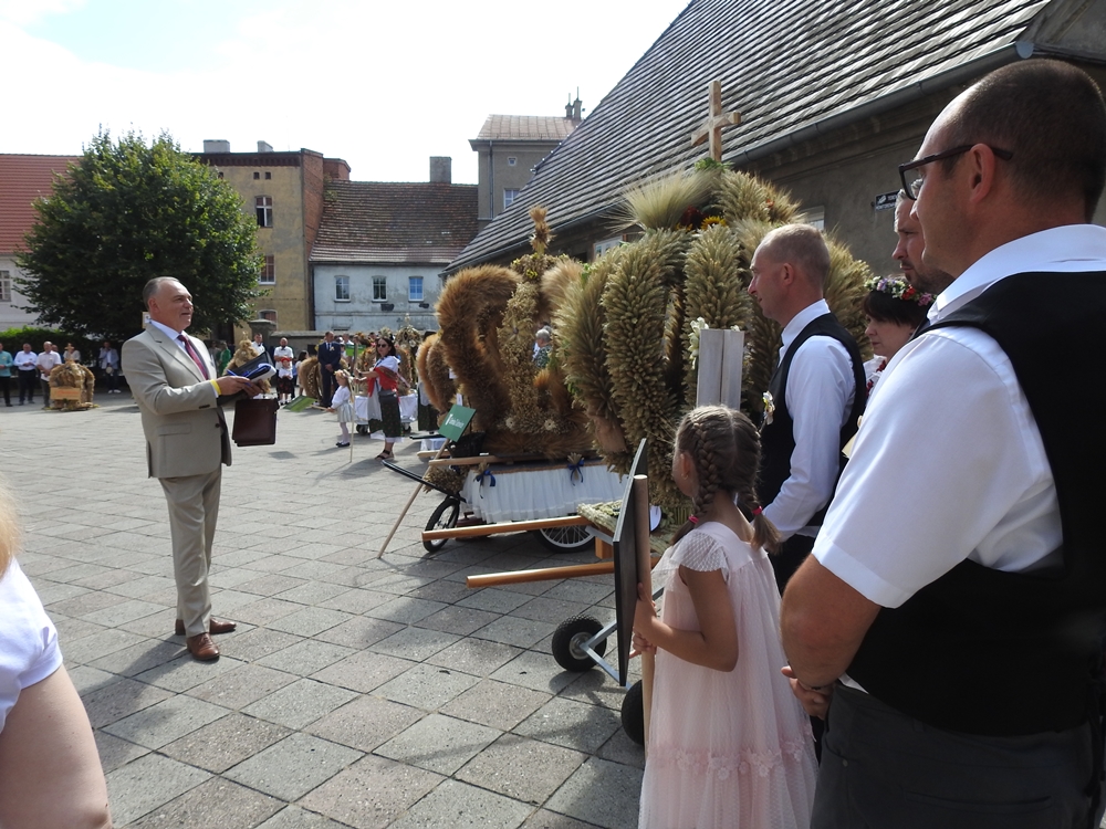 Jego słowa współgrały z obrazem – koron dożynkowych niesionych dumnie przez gospodynie z okolicznych sołectw.