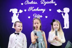 Na zakończenie uroczystości dzieci złożyły swoim Babciom i Dziadkom serdeczne życzenia: dużo zdrowia, radości, uśmiechu na każdy dzień. Jako wyraz miłości i wdzięczności przedszkolaki wręczyły swoim Dziadkom drobne upominki, które sprawiły ogromną euforia i wzruszenie.