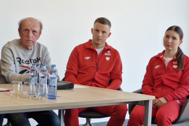 na fot.: Od lewej: Marek Walczak oraz reprezentanci Polski z KS Stal LA, Patryk Wykrota i Inga Kanicka.