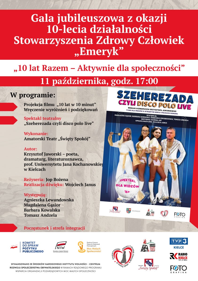 Gala jubileuszowa z okazji 10-lecia działalności Stowarzyszenia Zdrowy Człowiek „Emeryk”