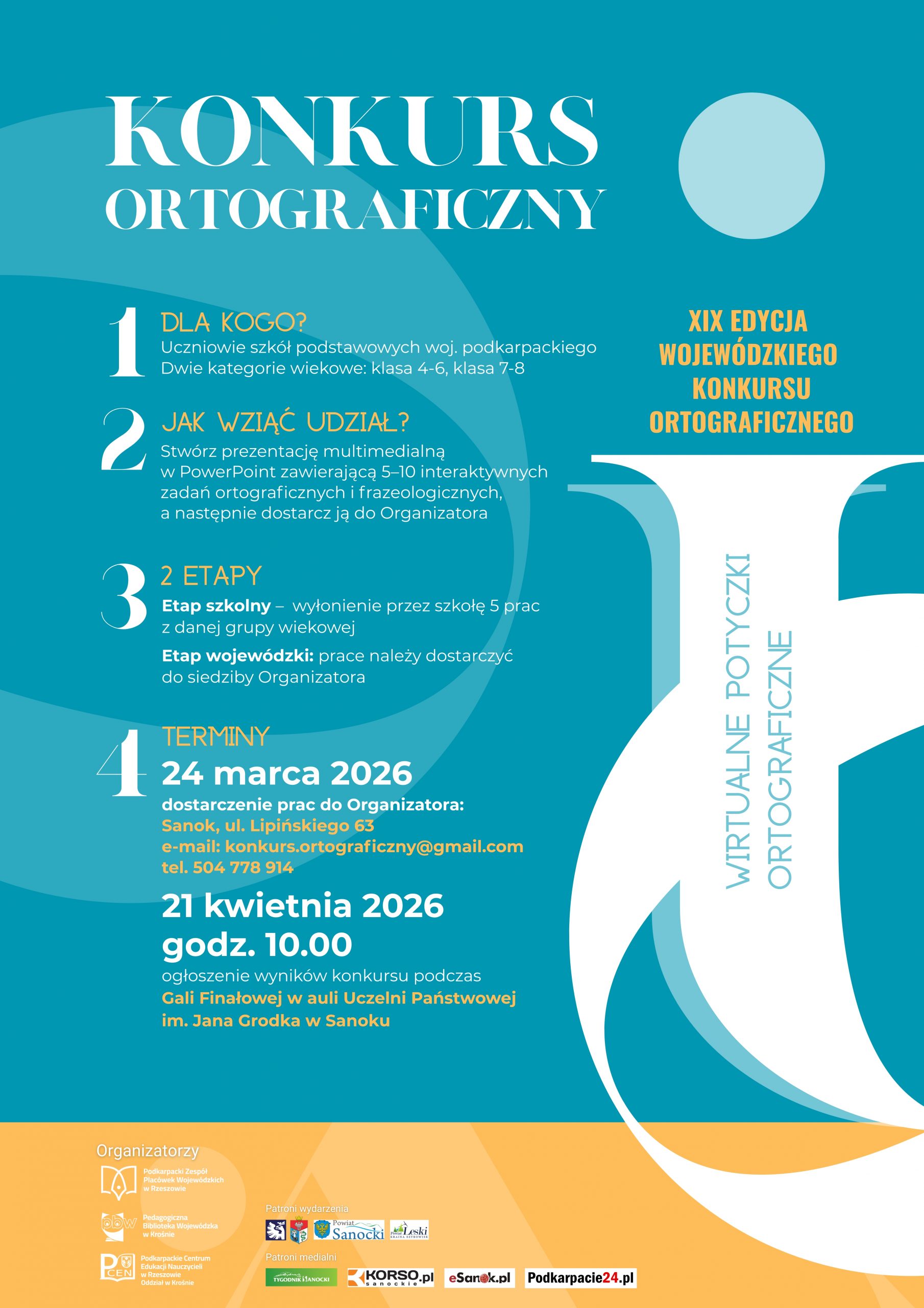 „Kurtyna Wyobraźni” to jednak nie wszystko. W trakcie gali nastąpi także wręczenie nagród w ramach XIX edycji Wojewódzkiego Konkursu Ortograficznego „Wirtualne Potyczki Ortograficzne”.