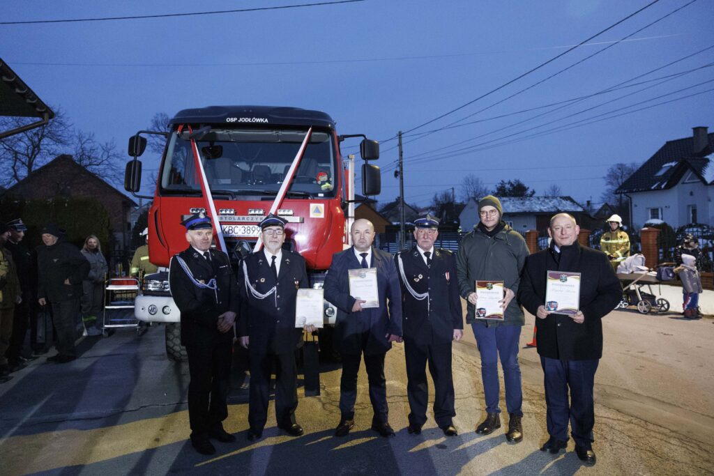 Ochotnicy z OSP Jodłówka (gm. Rzezawa) symbolicznie powitali nowy średni samochód ratowniczo-gaśniczy. Wóz został zakupiony dzięki środkom z rządowego Programu Ochrony Ludności i Obrony Cywilnej. W wydarzeniu uczestniczył wojewoda małopolski Krzysztof Jan Klęczar oraz m.in. dyrektor Biura Wojewody Łukasz Krzysztofik.