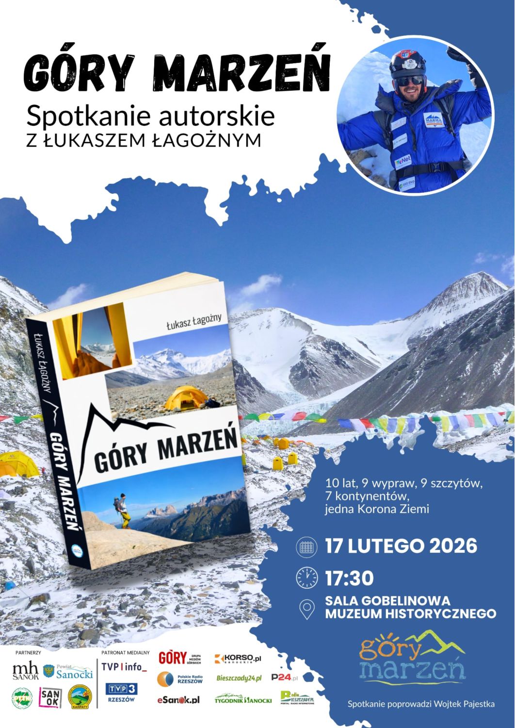 Już 17 lutego o godzinie 17:30 w Muzeum Historycznym w Sanoku, w Sali Gobelinowej, będzie można posłuchać Łukasza Łagożnego – himalaisty i autora książki „Góry marzeń” – opowiadającego o swoich górskich wyprawach, realizacji Korony Ziemi oraz pasji do podróży.