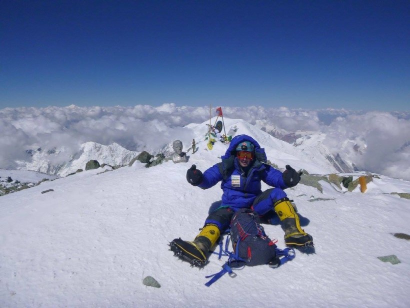 Łukasz Łagożny na szczycie Masywu Vinsona (4 892 m n.p.m.), Antarktyda – zdobycie najwyższego szczytu kontynentu w 2019 roku. fot. Łukasz Łagożny, archiwum prywatne[/caption]