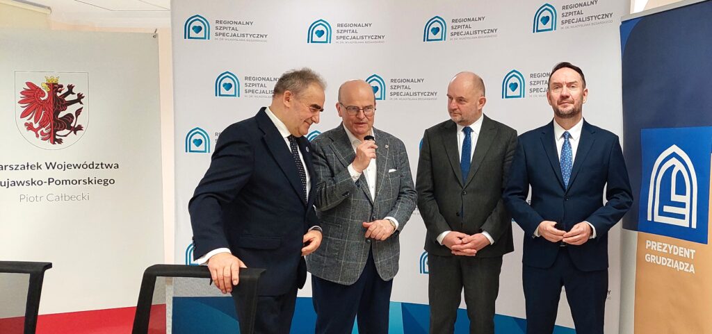 W podpisaniu umowy w grudziądzkim szpitalu uczestniczyli m.in.: wiceminister spraw wewnętrznych i administracji, poseł Tomasz Szymański, senator Ryszard Bober, marszałek województwa kujawsko-pomorskiego Piotr Całbecki, radni sejmiku woj. kujawsko-pomorskiego Robert Malinowski i Michał Czepek.