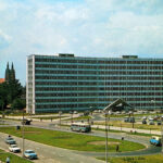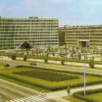 Kielce. Aleja IX Wieków Kielc. Lata 1975-1985. Widok z Domu Związków Zawodowych na północ, w kierunku urzędu wojewódzkiego i Alei IX Wieków Kielc / źródło: facebook.com/kieleckieinwestycjeAleja IX Wieków Kielc łączy rondo im. Herlinga Grudzińskiego, u zbiegu ulic Paderewskiego, Okrzei i 1 Maja, ze skrzyżowaniem ulic Sandomierskiej i Źródłowej oraz Alei Solidarności. Początkowo był to miejski odcinek drogi krajowej nr 74 (do wybudowania pod koniec lat 90. XX wieku ulicy Łódzkiej). Z kolei po połączeniu ulicy Zagnańskiej z ulicą Żelaznej, po wybudowaniu ulicy Gosiewskiego, stanowiła fragment drogi wojewódzkiej nr 762.