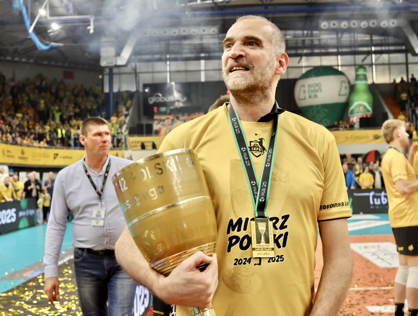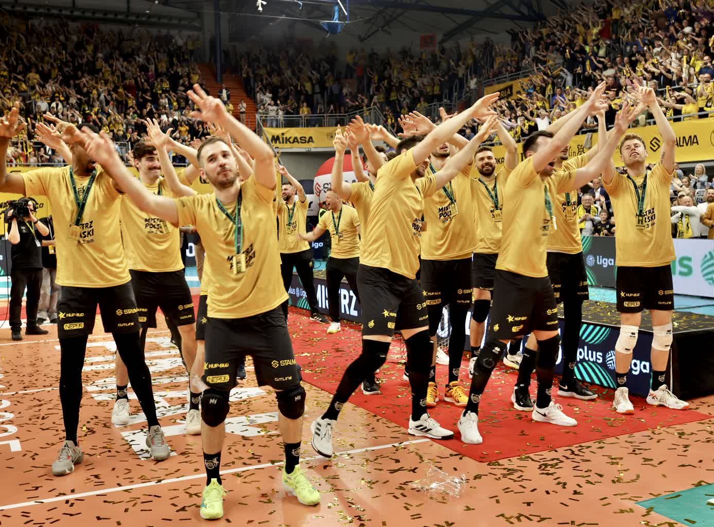 – Włożyłem bardzo dużo serca w to, żeby ten zespół miał duszę – mówi środkowy Jan Nowakowski. – Cztery sezony spędziłem w jednym miejscu, bardzo dużo potu, pewnie też krew zostawiona na parkiecie. Ale naprawdę bardzo dużo serca w takich momentach, których nie widać na boisku, nie widać, kiedy świecą reflektory, gra muzyka i gramy w siatkówkę. Tylko siedzimy w szatni i czasem są problemy, które trzeba rozwiązać. Jestem przeszczęśliwy, iż wieszamy złoty medal na szyi.
