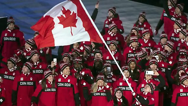 Narciarz jeżdżący po muldach Mikaël Kingsbury z Deux-Montagnes w prowincji Quebec oraz zawodniczka narciarstwa dowolnego Marielle Thompson z Whistler w Kolumbii Brytyjskiej nieśli kanadyjską flagę podczas ceremonii otwarcia Zimowych Igrzysk Olimpijskich. Oboje są złotymi medalistami olimpijskimi i poprowadzili reprezentację Kanady w Livigno.