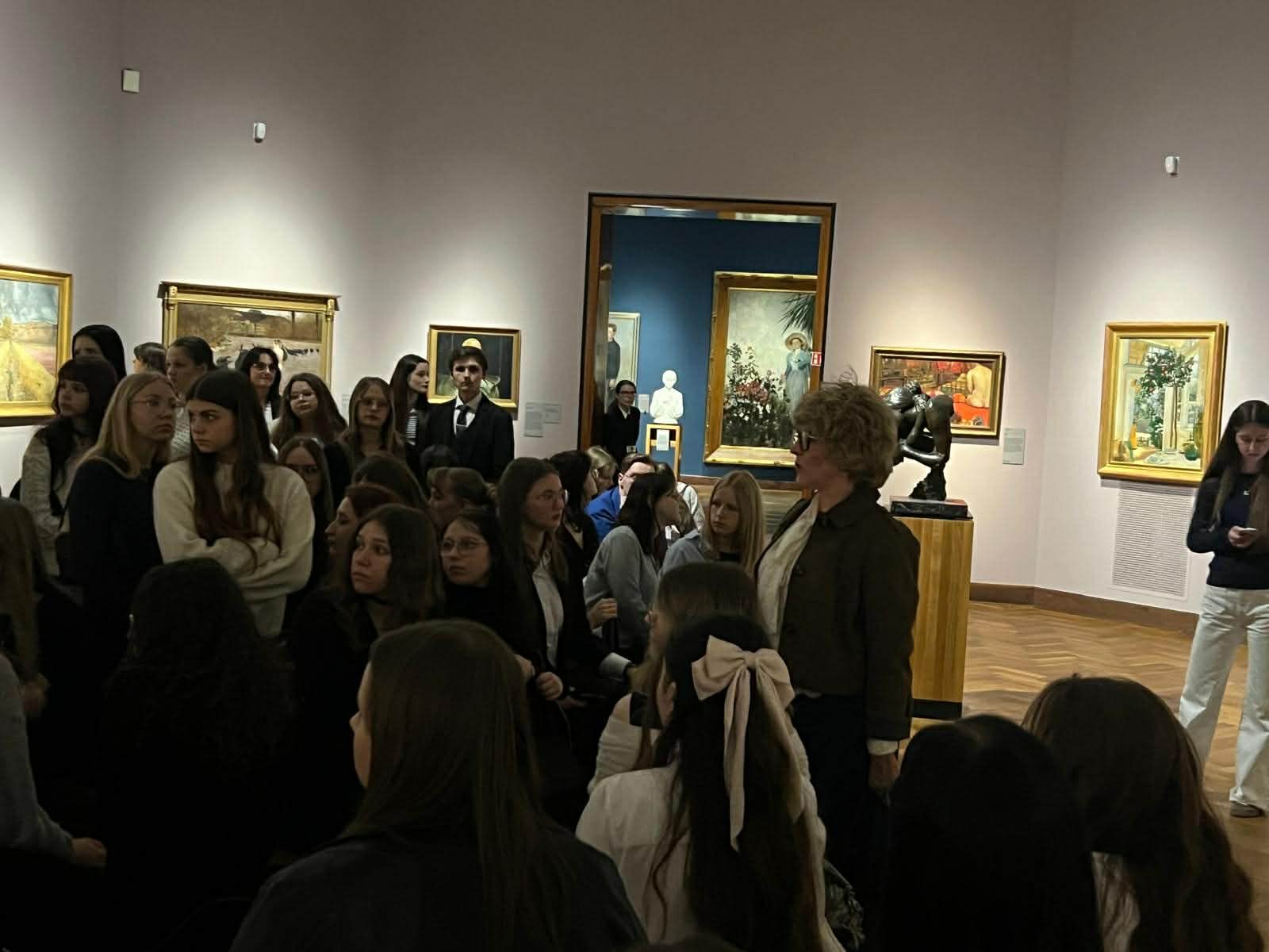 Tak bardzo oczekiwany przez nas wątek miłosny, dotyczący relacji głównego bohatera – S. Wokulskiego i jego wybranki – I. Łęckiej – jest w przedstawieniu potraktowany niemalże marginalnie. Autorzy spektaklu wykorzystali natomiast tezy zawarte w ponadczasowym dziele Prusa do ilustracji aktualnych problemów społeczno – politycznych, z którymi boryka się współczesny świat. Zatem, Wokulski to zarówno dzisiejszy marzyciel Don Kichot, ale też przemysłowy gangster i właściciel współczesnej galerii sztuki, po której oprowadza nas nikt inny… jak Izabela Łęcka. jeżeli jesteście ciekawi przedstawienia, sami musicie zmierzyć się z jego realizacją. Natomiast uczestnicy kulturalnej uczty – w celu dopełnienia teatralnych wrażeń – udali się do Muzeum Narodowego. Tam skonfrontowali poglądy innego mistrza literatury – Stanisława Wyspiańskiego, który do ilustracji symbolicznych treści własnego dzieła użył nieśmiertelnych obrazów swojego mistrza – Jana Matejki: Bitwy pod Grunwaldem oraz Stańczyka. Atmosferę modernistycznych doznań artystycznych podsyciły słynne „Chochoły” autorstwa Wyspiańskiego, dzieła Ludwika de Laveaux, Jacka Malczewskiego, Juliusza Mehoffera czy Władysława Podkowińskiego.