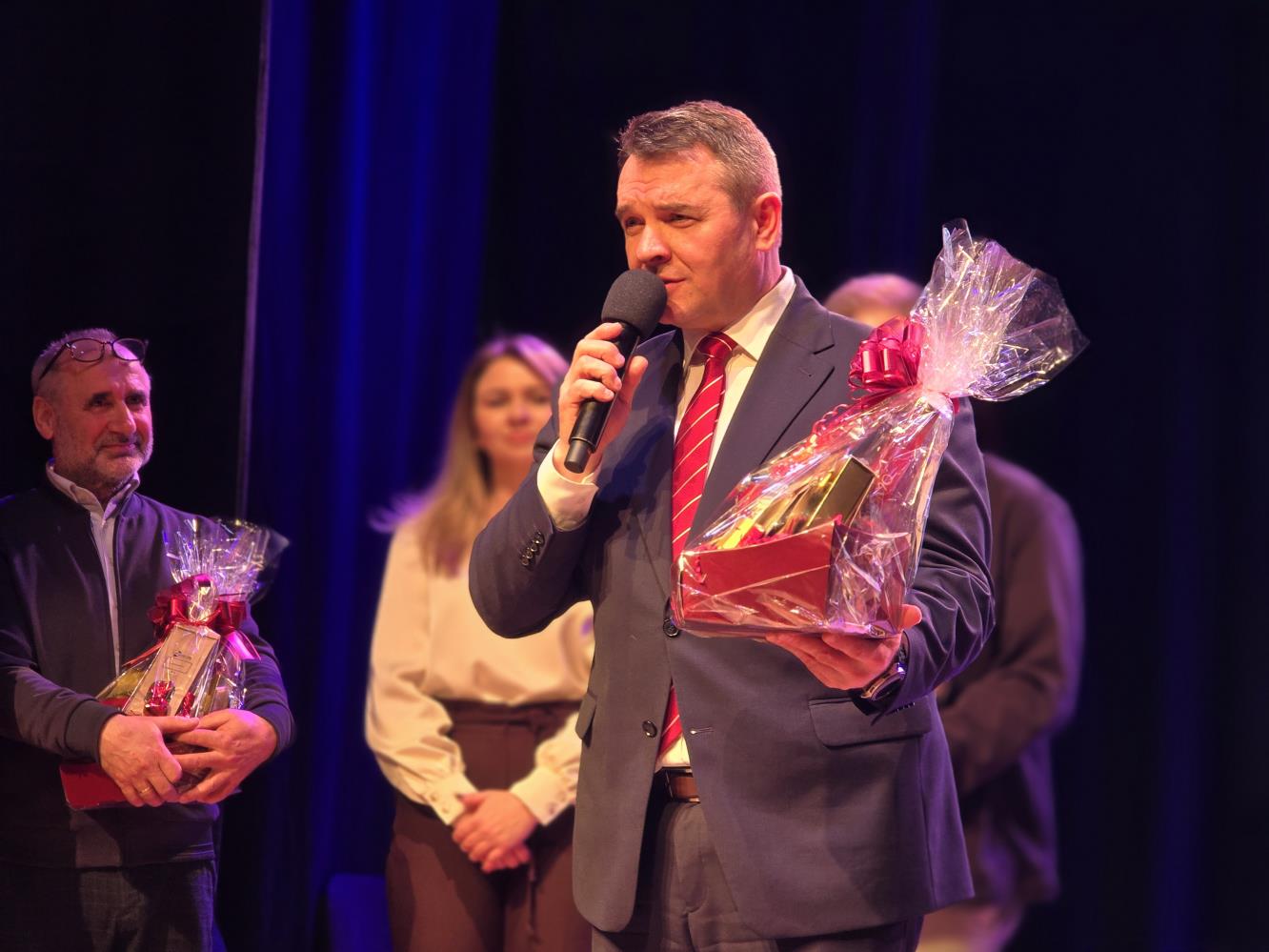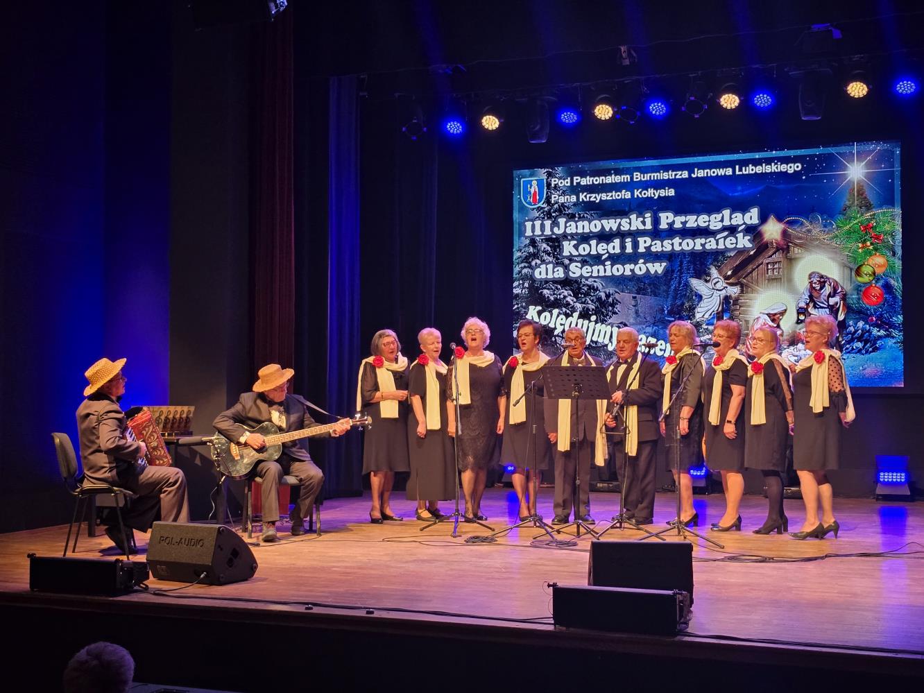W kolędowaniu wziął udział również Starosta Janowski Artur Pizoń, pokazując, iż takie spotkania naprawdę łączą ludzi i pomagają pielęgnować nasze piękne tradycje. W tym roku w konkursie wystąpiło 11 wykonawców, w tym 5 zespołów. Jury w składzie Marian Giska i Aleksander Krzos postanowiło przyznać wszystkim uczestnikom równorzędne miejsca, bo każdy występ był wyjątkowy.