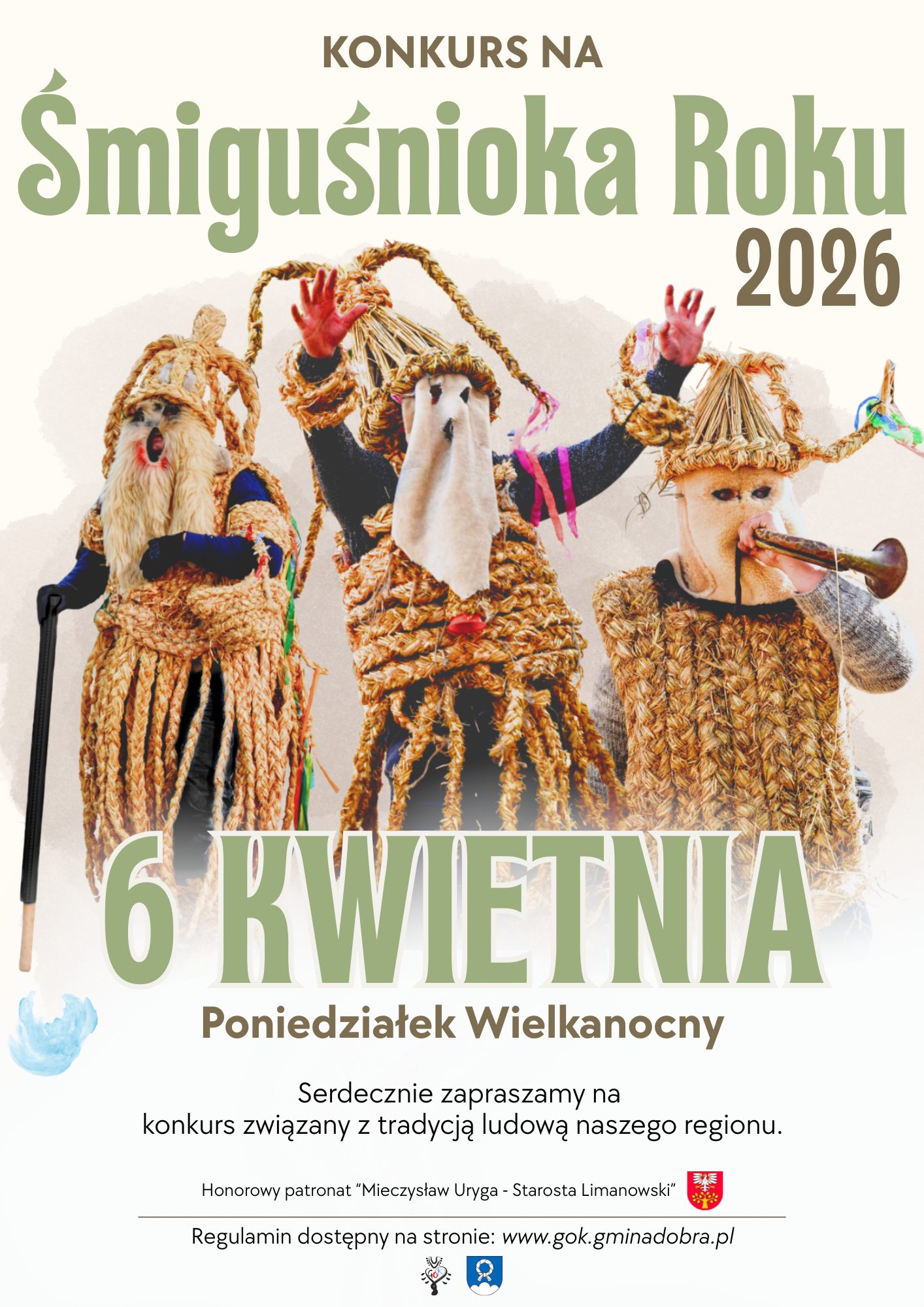 Gminny Ośrodek Kultury w Dobrej zaprasza do udziału w konkursie na Śmiguśnioka Roku 2026. Widowiskowa rywalizacja tradycyjnie zostanie przeprowadzona w Poniedziałek Wielkanocny.