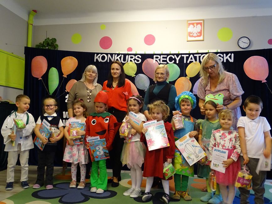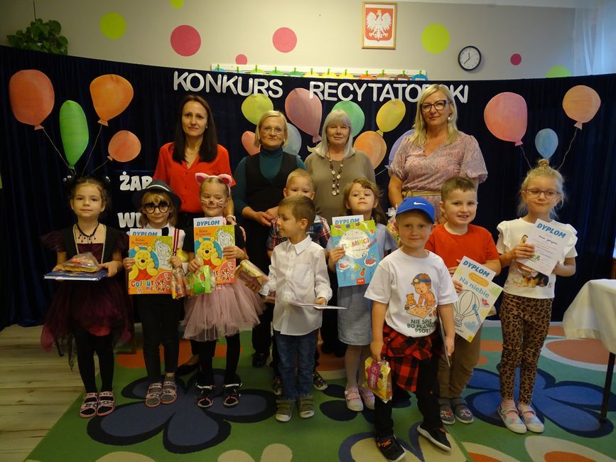 Na zakończenie konkursu wszyscy uczestnicy otrzymali dyplomy i książki jako pamiątkę za piękne występy. Konkurs miał wyjątkowy charakter i stał się prawdziwym świętem poezji w naszym przedszkolu. Szczególne podziękowania składamy pani Wioli Matyjaszczyk z Filii Nr 1 Miejskiej Biblioteki Publicznej, która od lat współpracuje z naszym przedszkolem i zawsze chętnie angażuje się i wspiera nas w wielu wydarzeniach.