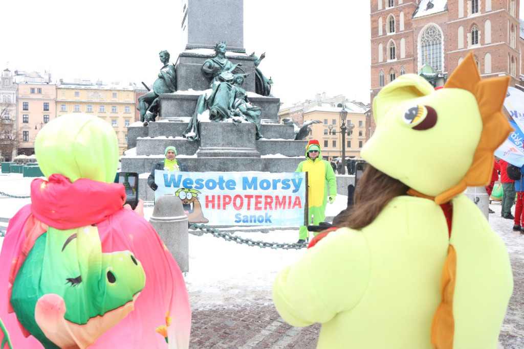 Samo wydarzenie zaczęło się jednak znacznie cieplej od spotkania na Rynku Głównym. Barwny korowód uczestników, budząc spore zainteresowanie turystów, przemaszerował pod pomnik Smoka Wawelskiego – na pamiątkowe zdjęcie, a następnie w okolicę Mostu Grunwaldzkiego. Tam, po obowiązkowej i bardzo intensywnej rozgrzewce, śmiałkowie zamienili zimowe kurtki na stroje do kąpieli.
