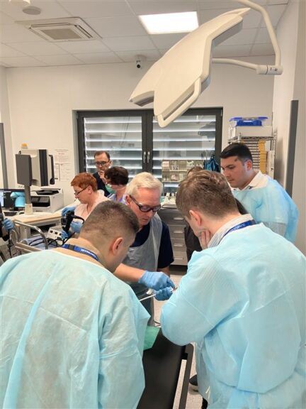 Uczestnicy, pod kierownictwem profesora Michała Kukli, mieli okazję doskonalić umiejętności w zakresie endoskopii, kolonoskopii oraz zaawansowanych procedur diagnostycznych i terapeutycznych. W programie znalazły się m.in. pokazy zabiegów na żywo (ERCP, EUS), praca na symulatorze Mikoto Colonoscopy Model, a także zajęcia poświęcone standardom bezpieczeństwa i organizacji pracy w nowoczesnym zakładzie endoskopii.