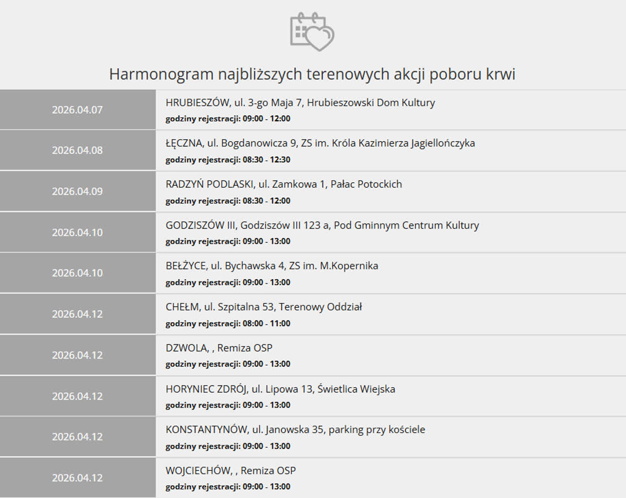 Ambulans do poboru krwi stanie przy hrubieszowskim domu kultury przy ul. 3 Maja 7. Rejestracja dawców w godzinach 9.00-12.00.