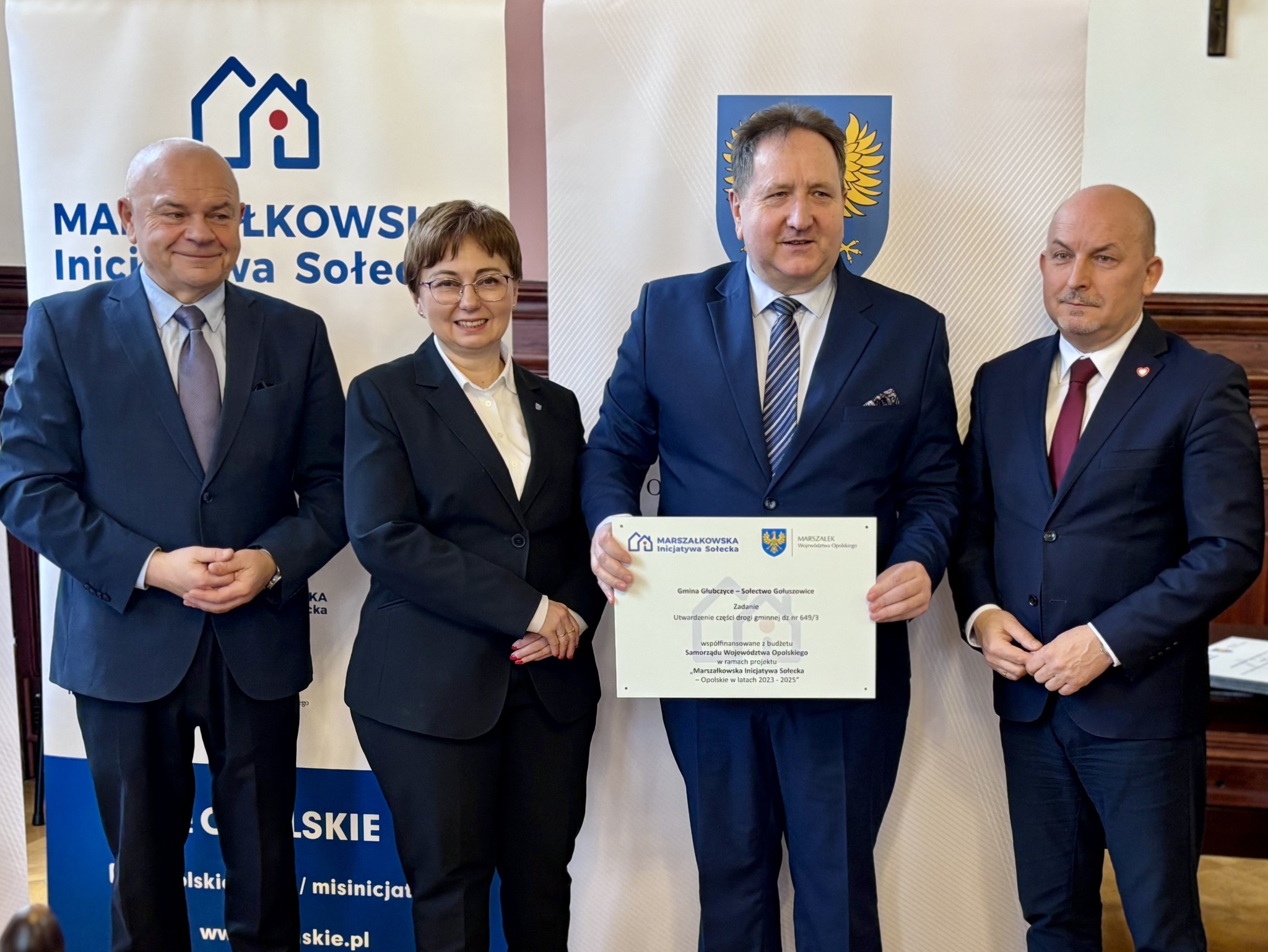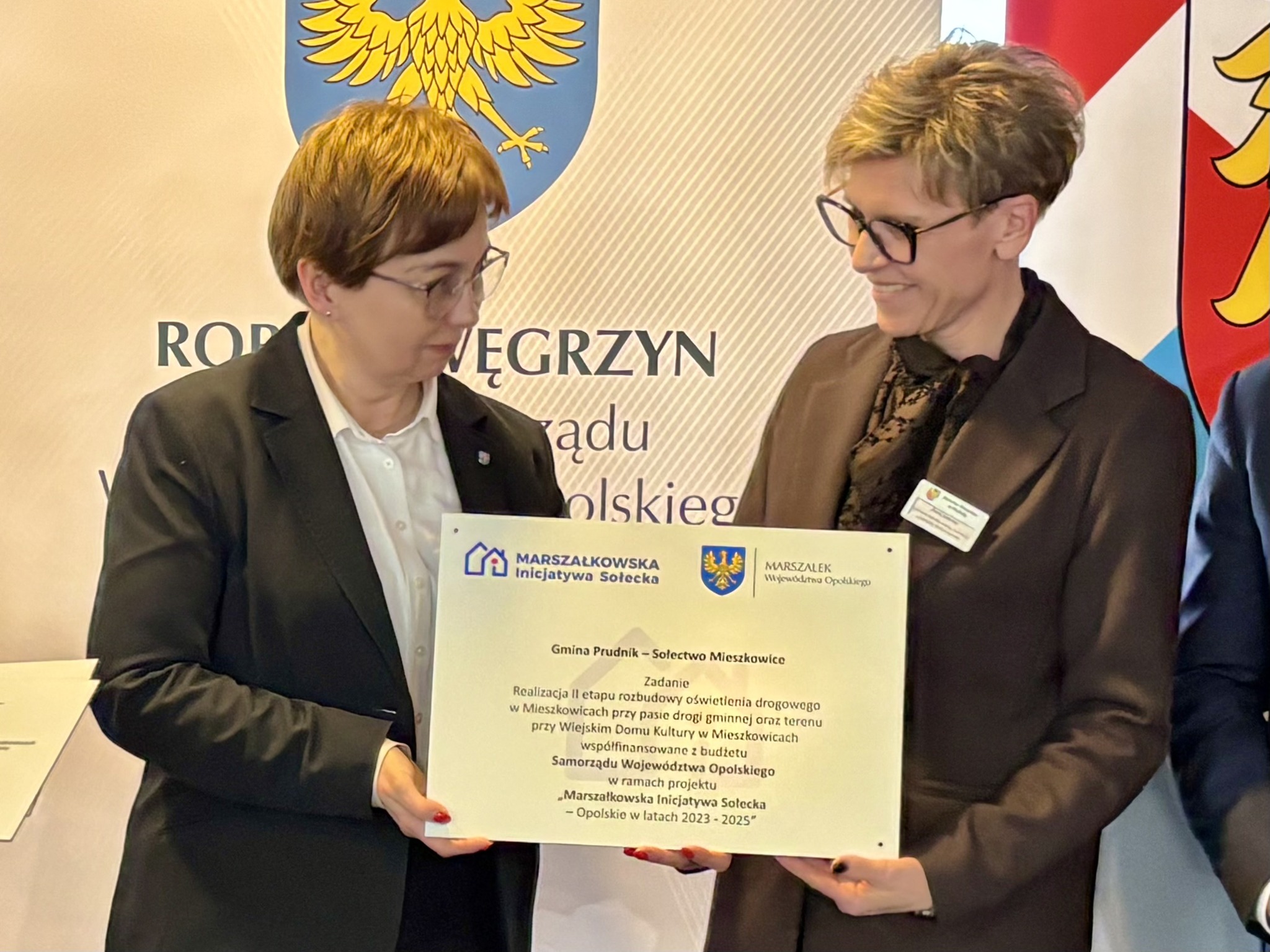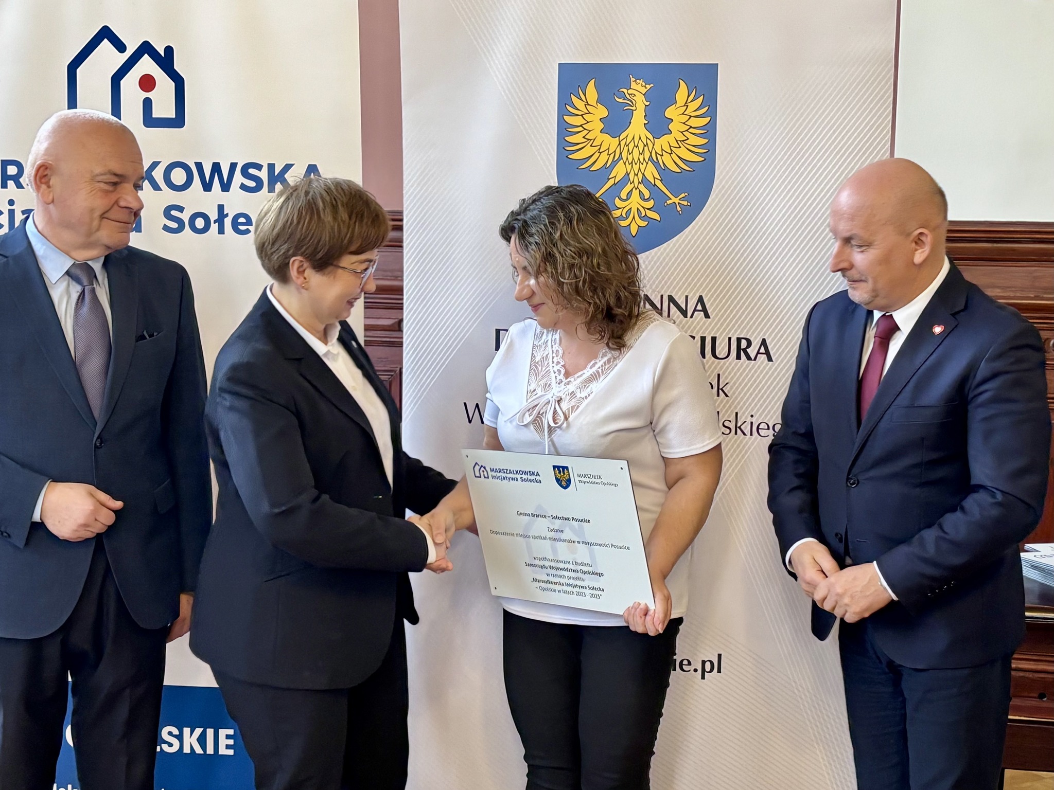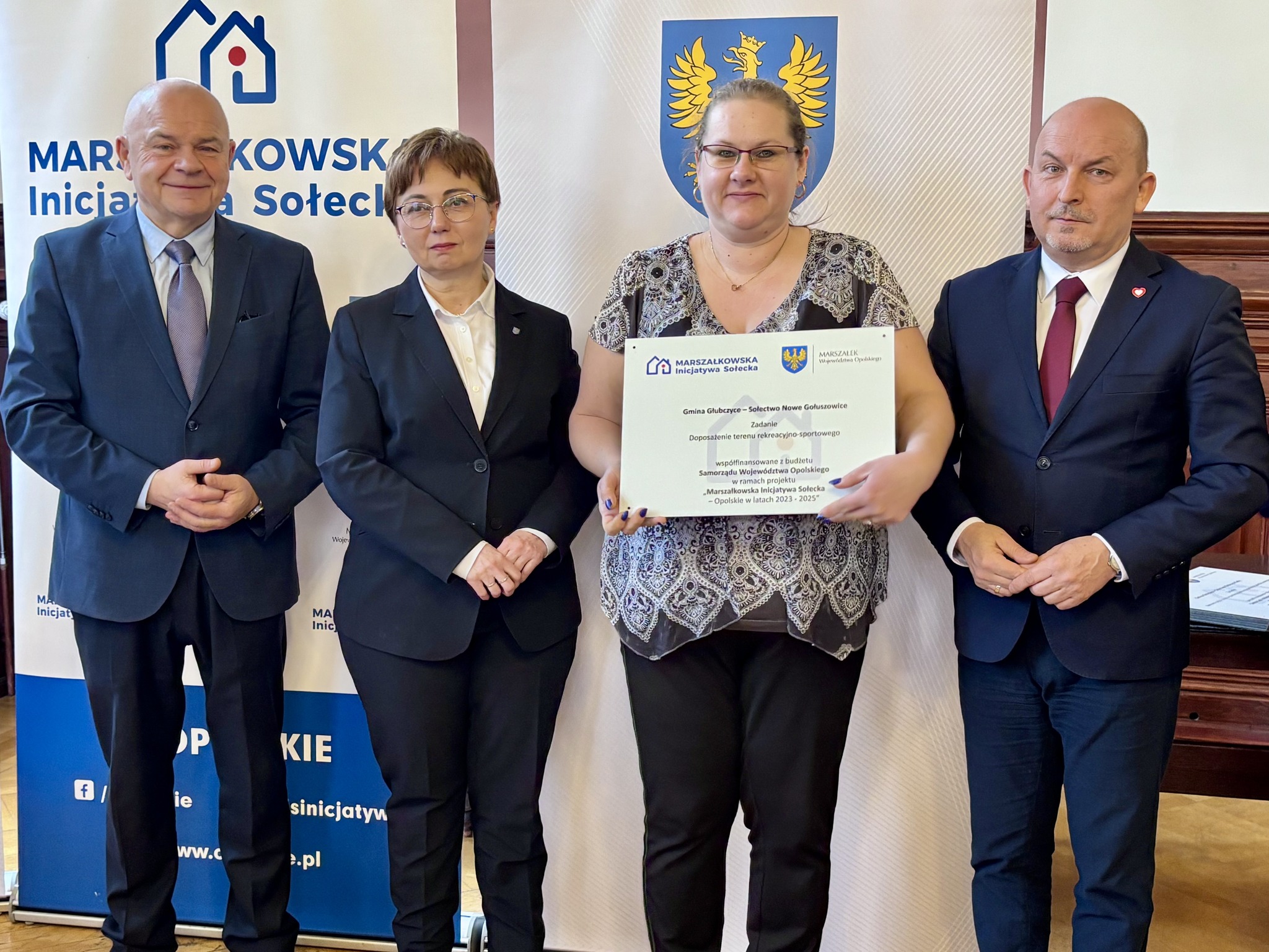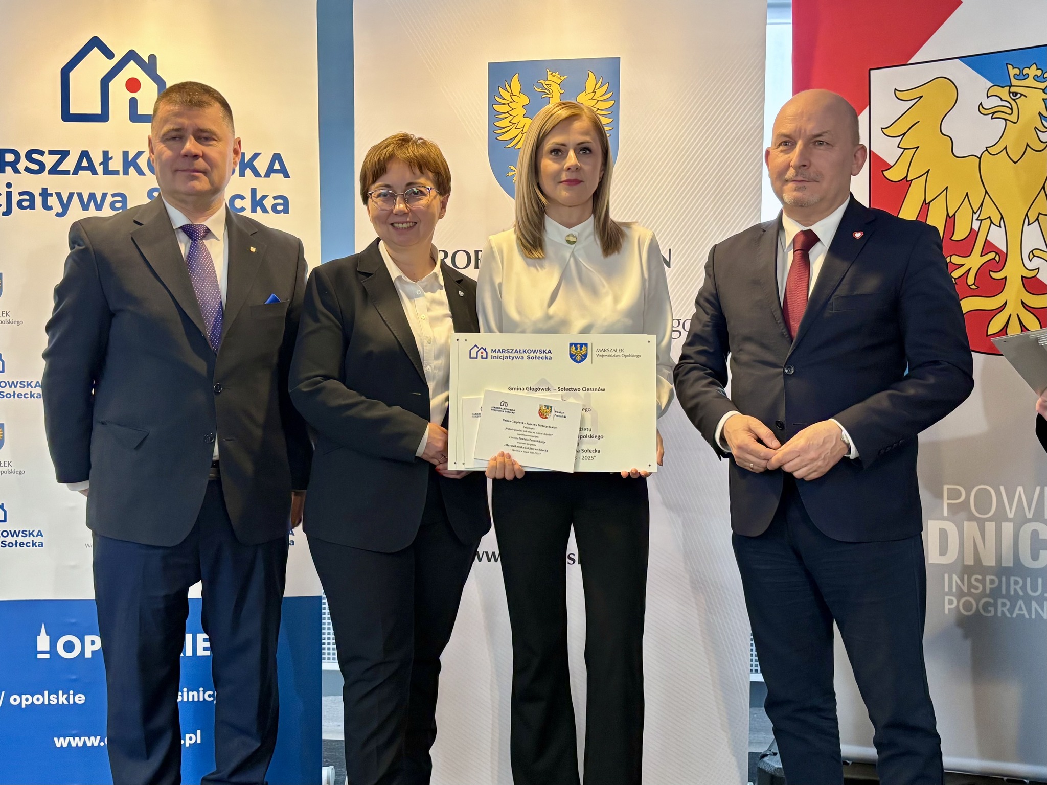 Podczas spotkania z przedstawicielami sołectw z powiatów głubczyckiego i prudnickiego wręczono pamiątkowe tabliczki – symboliczne, ale ważne. Domykają realizację projektów i zostają w przestrzeni wsi jako cichy dowód, iż coś zostało zrobione wspólnie: przez mieszkańców, samorządy i województwo.