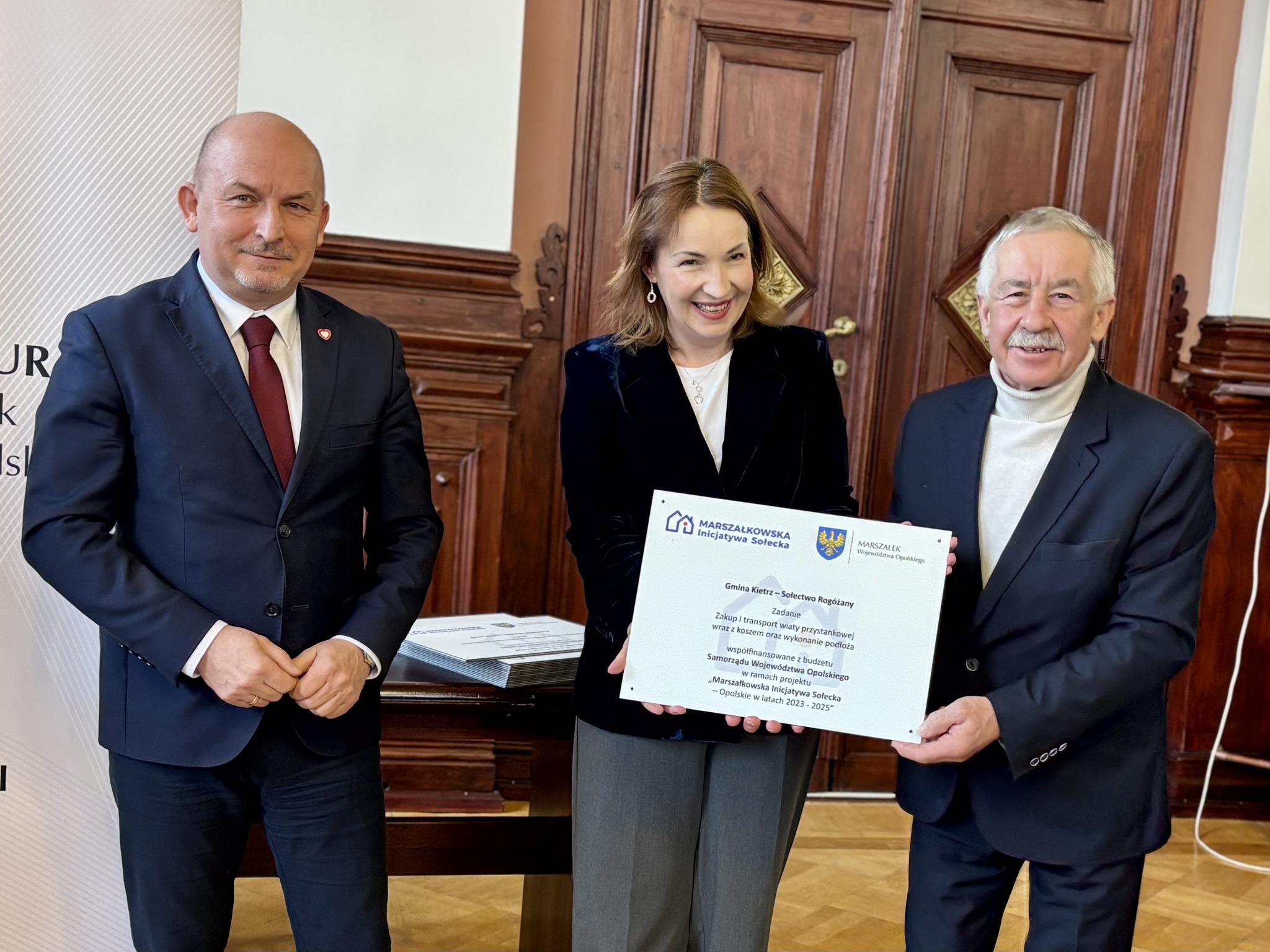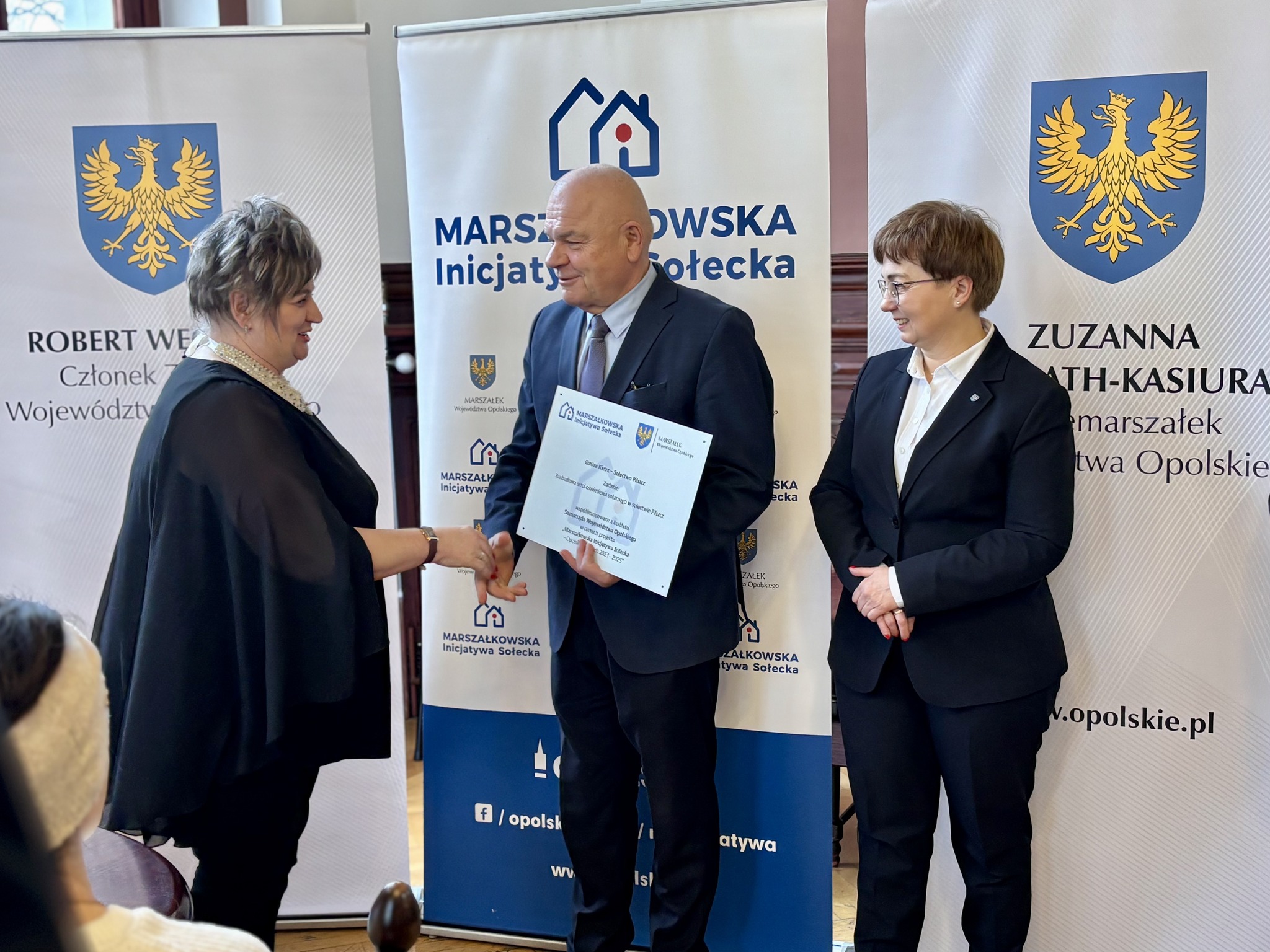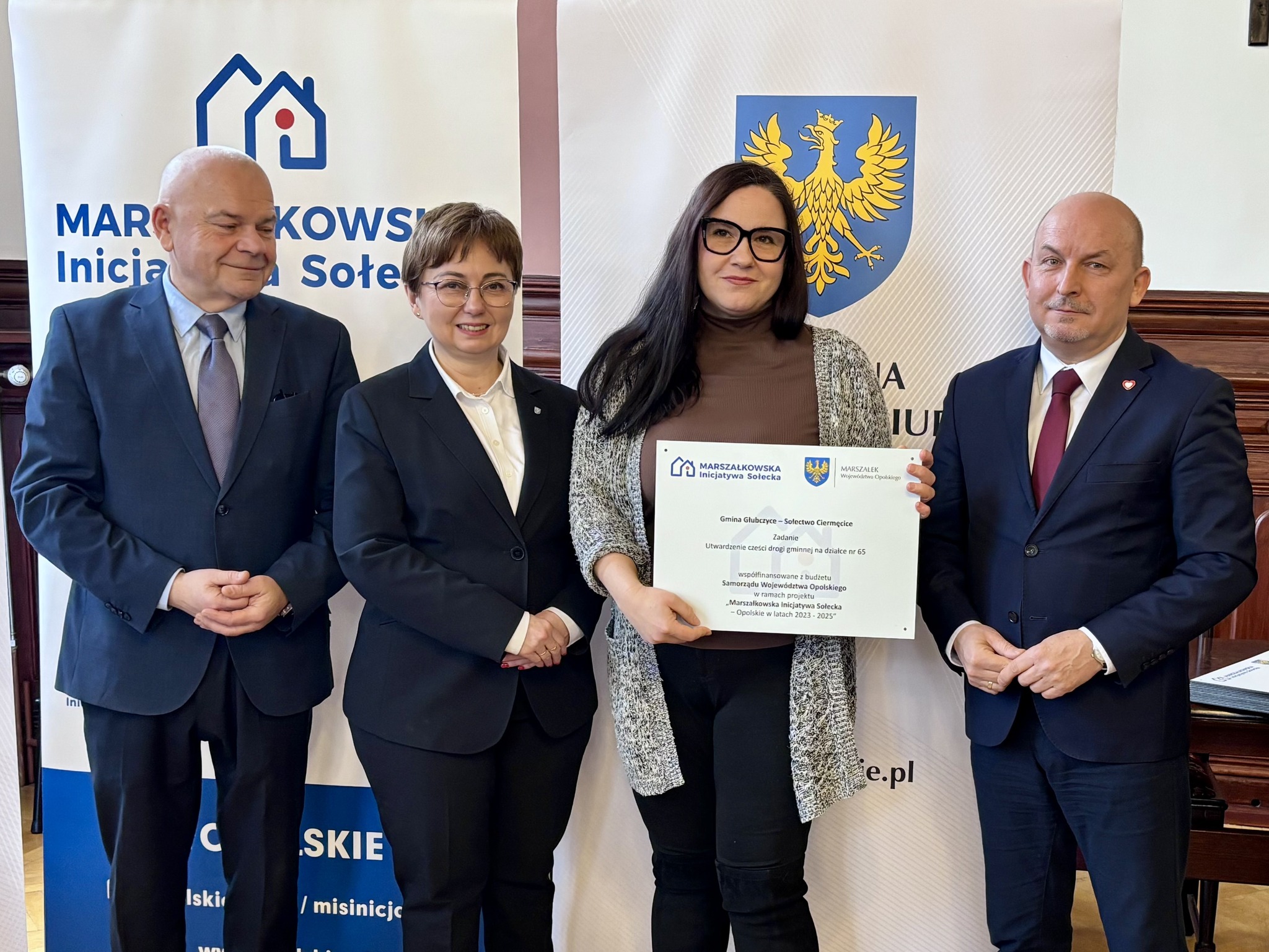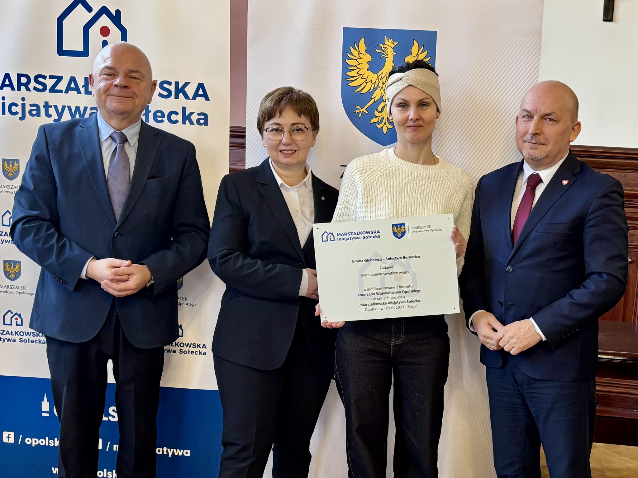 Podczas spotkania z przedstawicielami sołectw z powiatów głubczyckiego i prudnickiego wręczono pamiątkowe tabliczki – symboliczne, ale ważne. Domykają realizację projektów i zostają w przestrzeni wsi jako cichy dowód, iż coś zostało zrobione wspólnie: przez mieszkańców, samorządy i województwo.