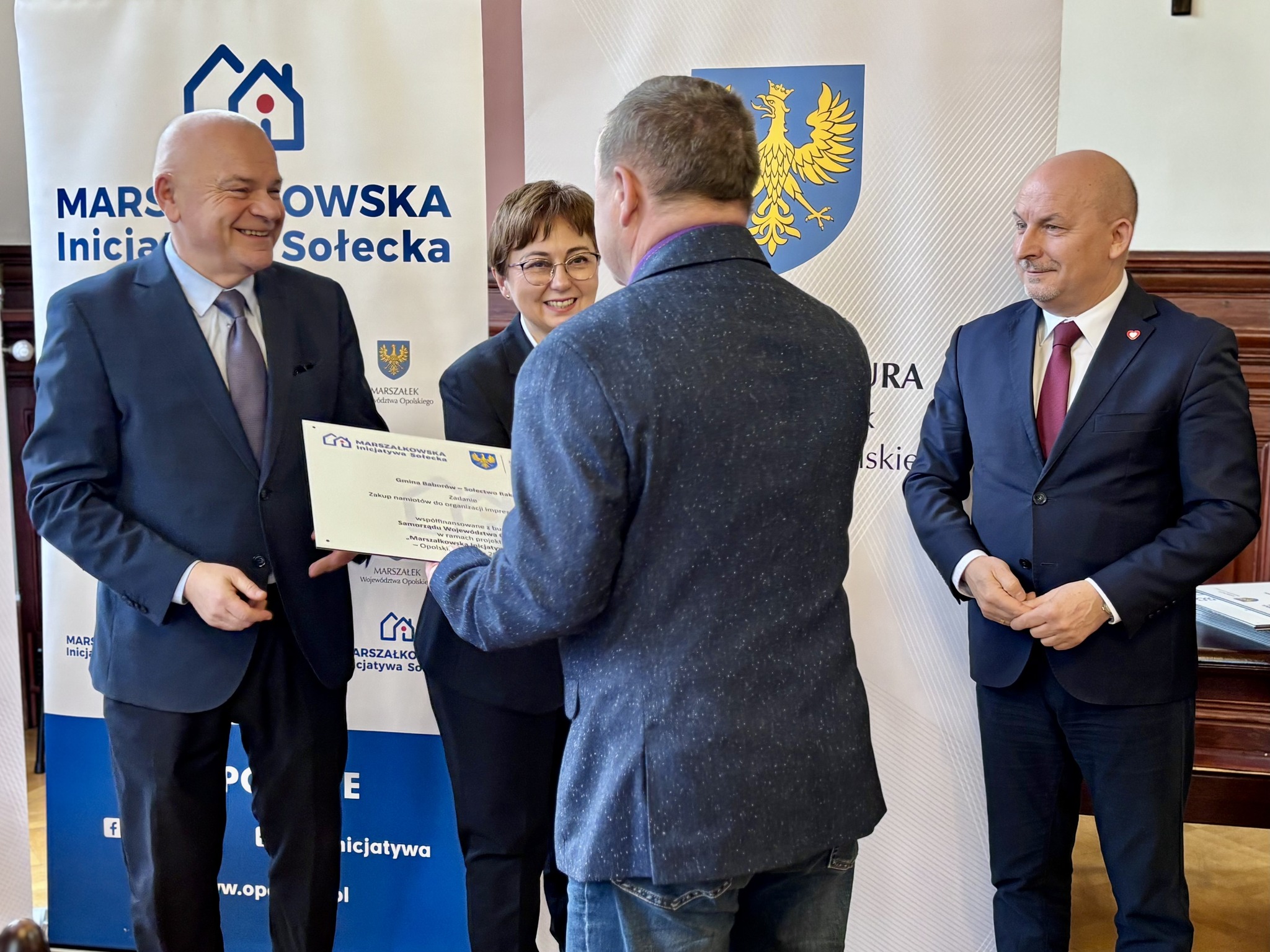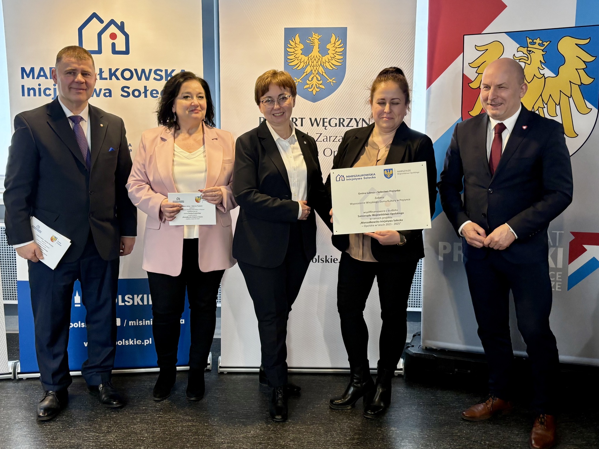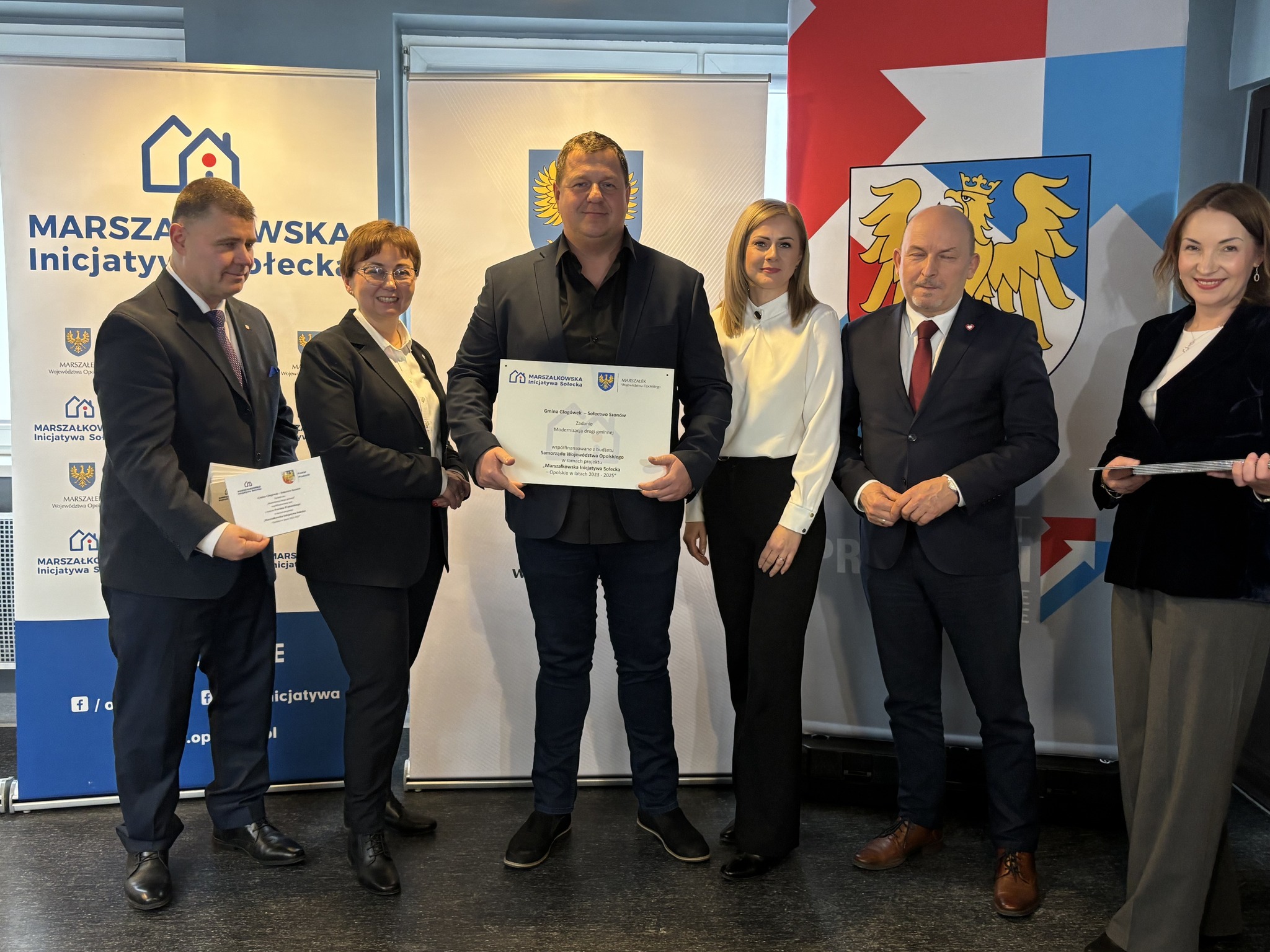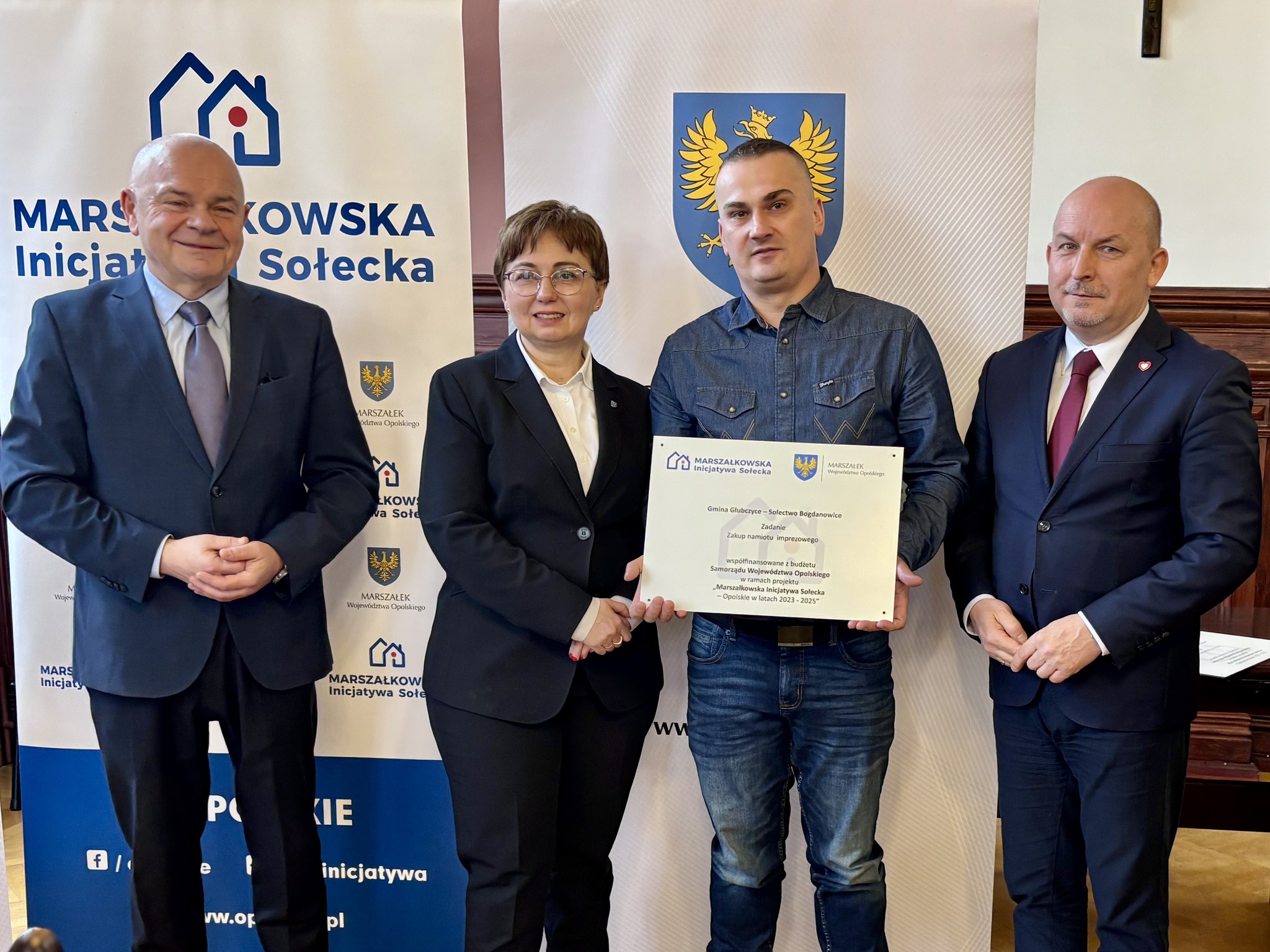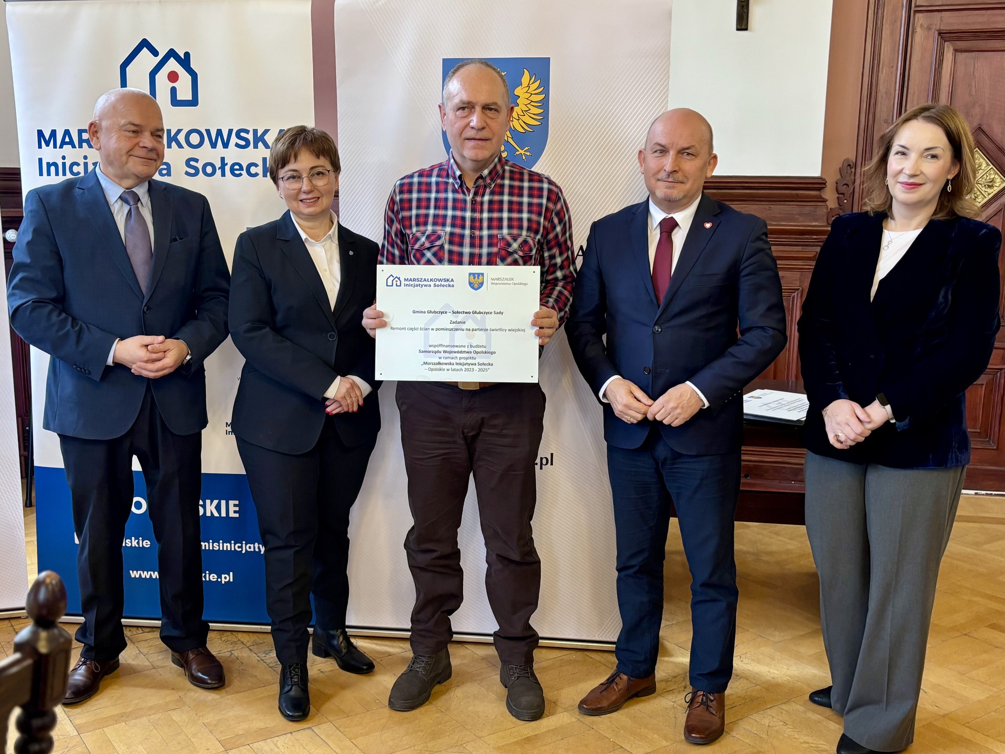 Podczas spotkania z przedstawicielami sołectw z powiatów głubczyckiego i prudnickiego wręczono pamiątkowe tabliczki – symboliczne, ale ważne. Domykają realizację projektów i zostają w przestrzeni wsi jako cichy dowód, iż coś zostało zrobione wspólnie: przez mieszkańców, samorządy i województwo.