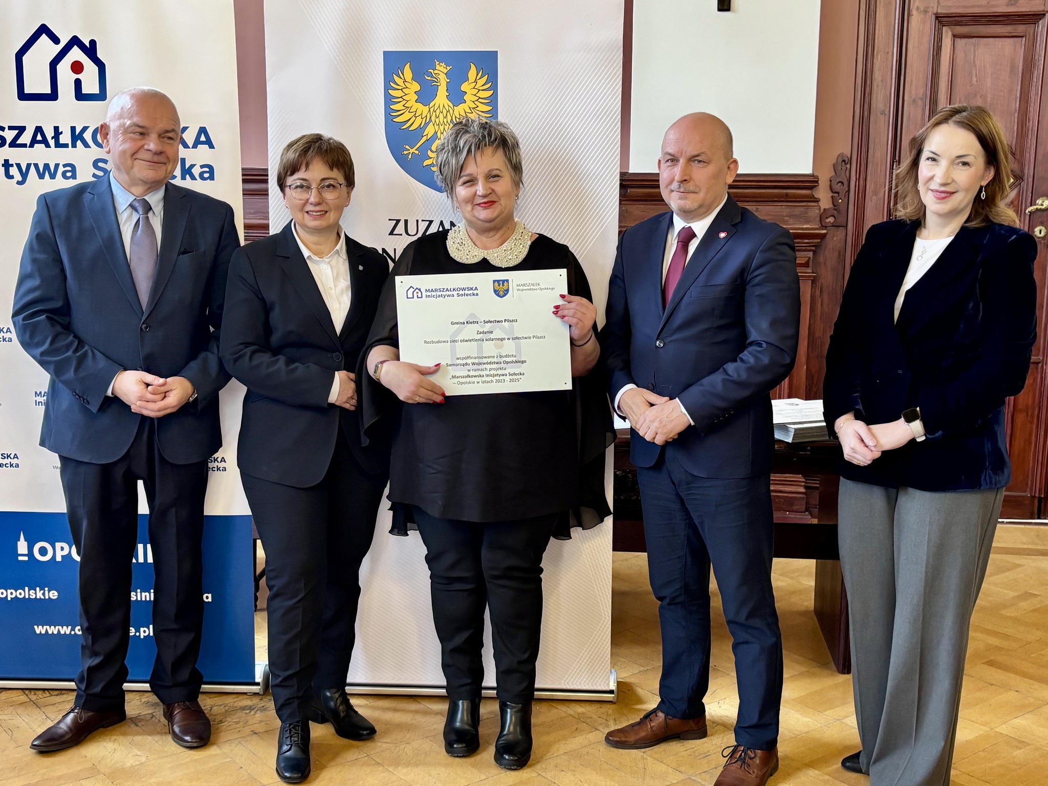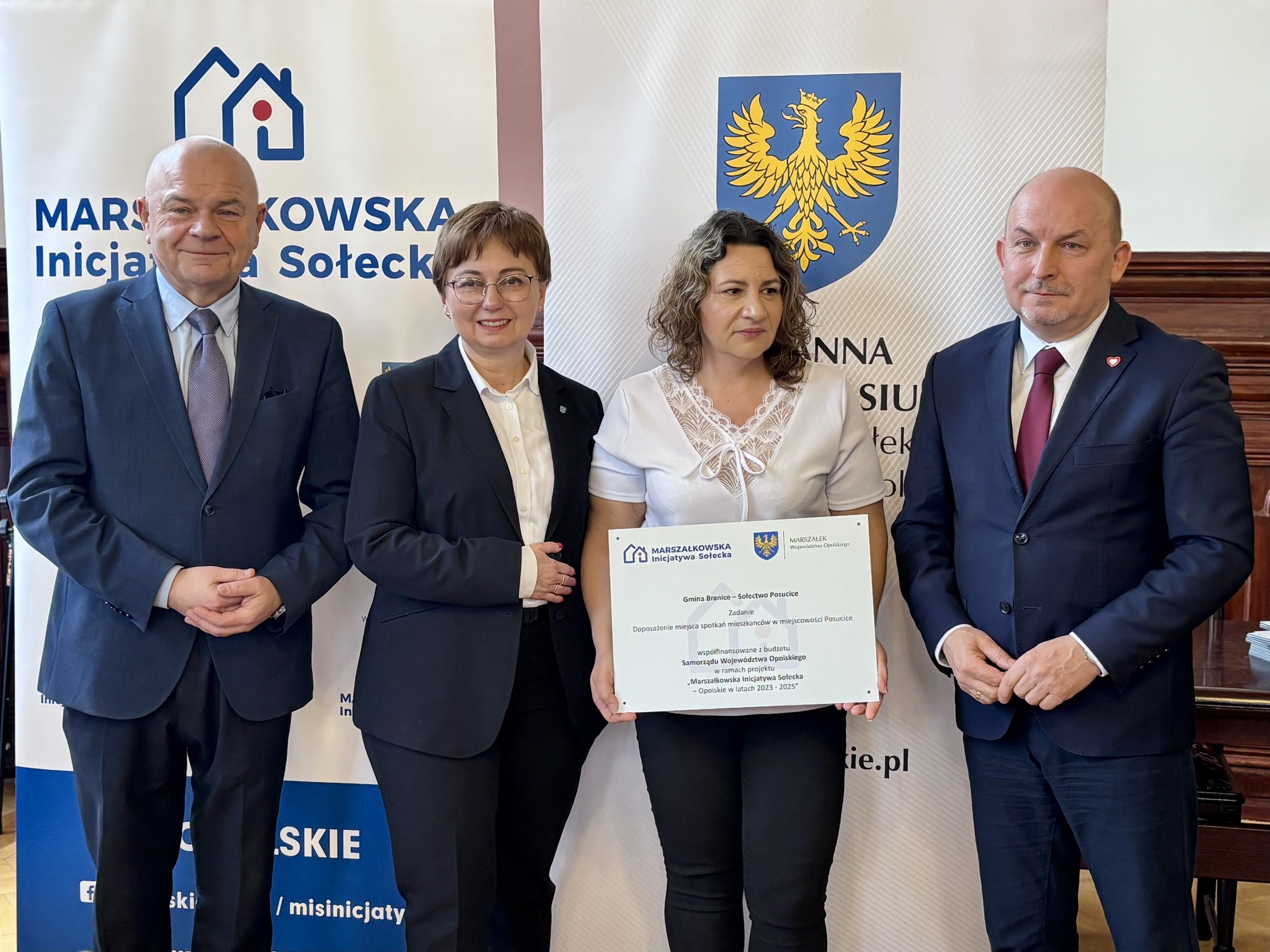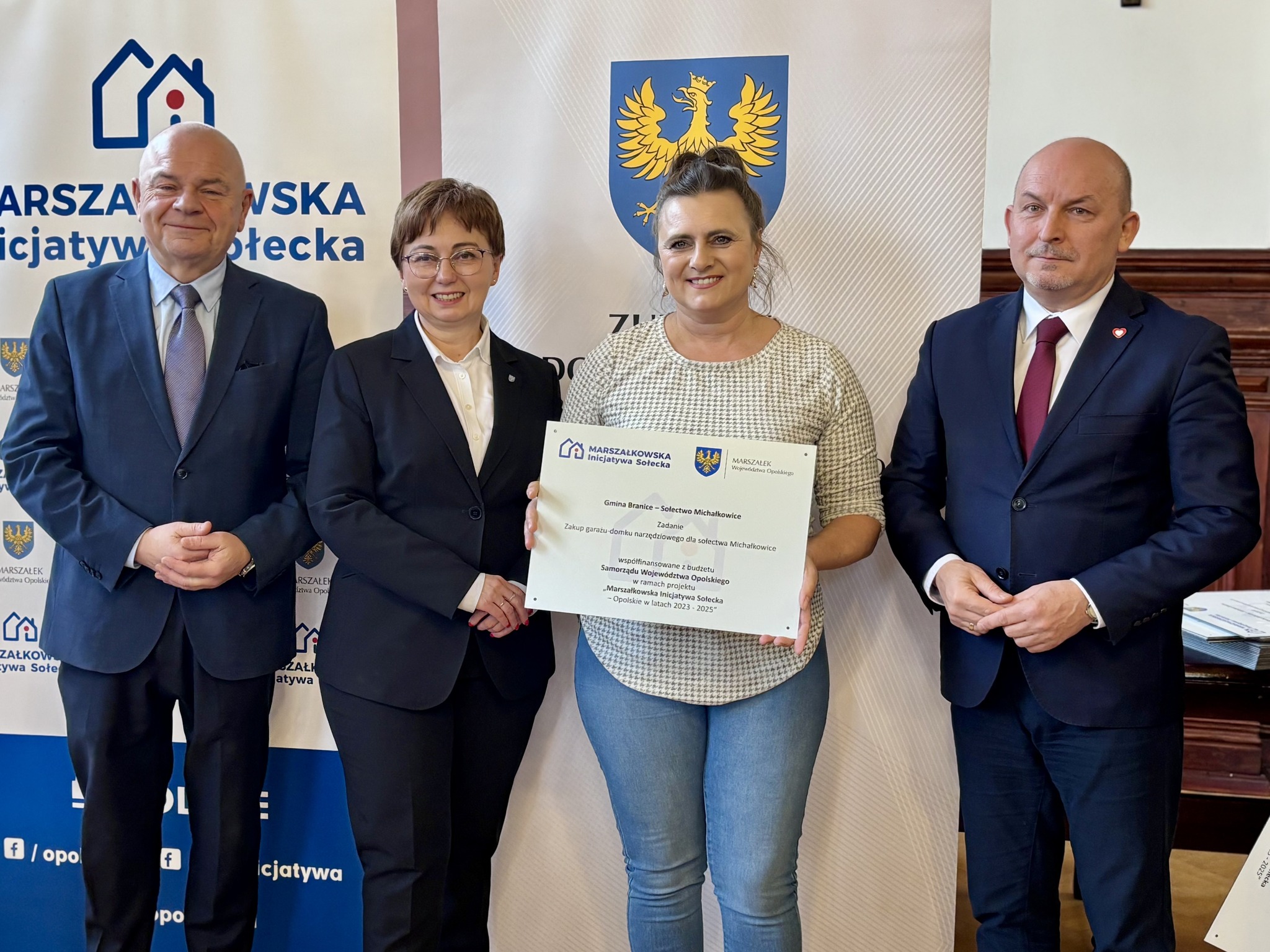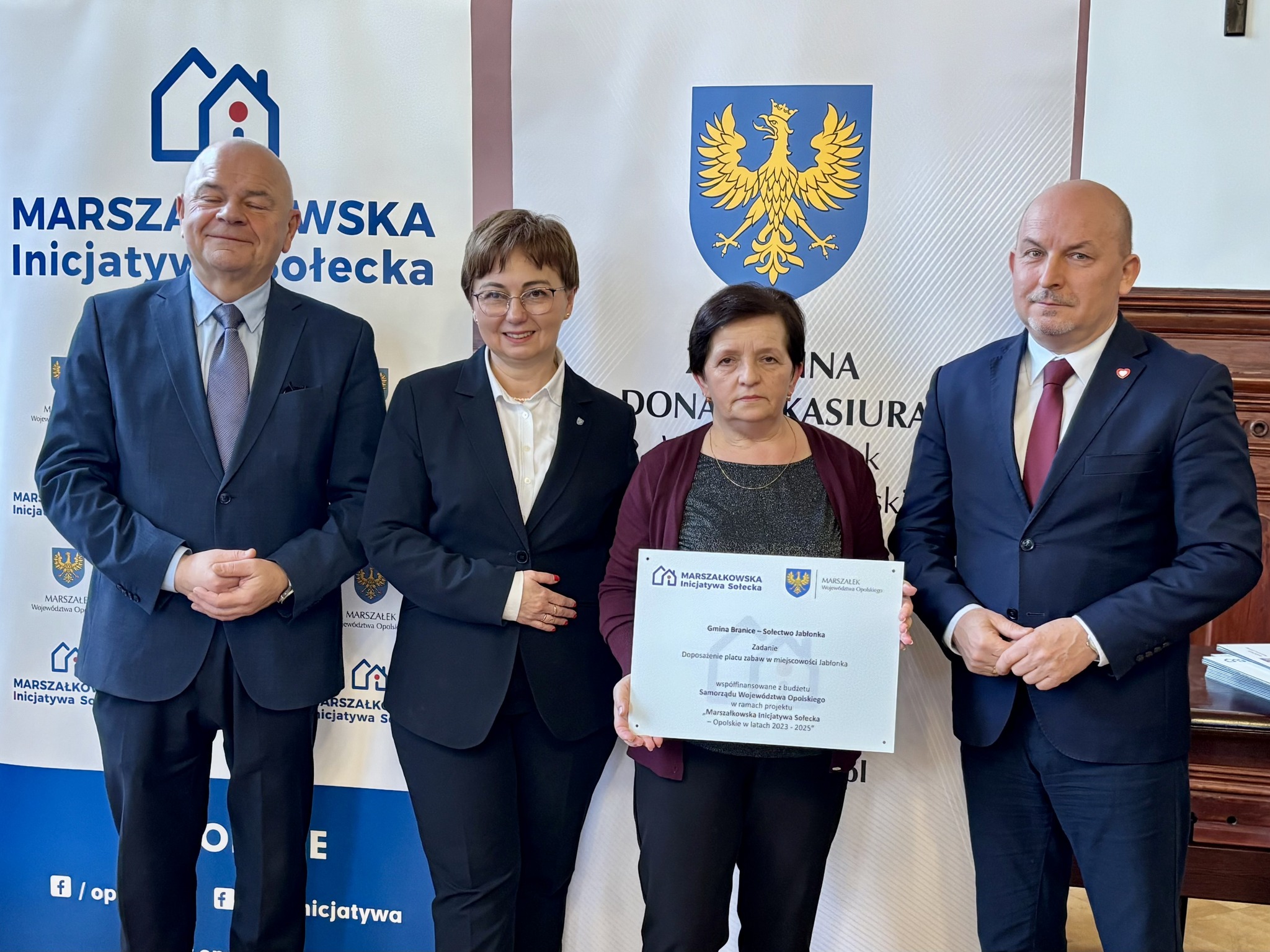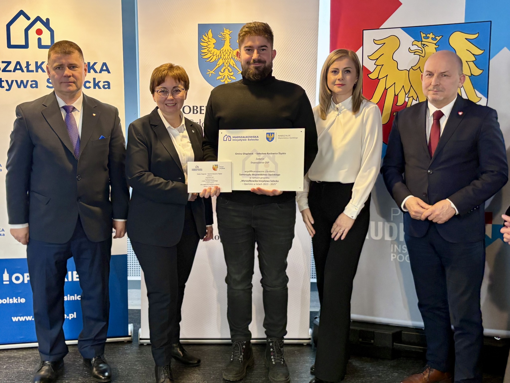 Podczas spotkania z przedstawicielami sołectw z powiatów głubczyckiego i prudnickiego wręczono pamiątkowe tabliczki – symboliczne, ale ważne. Domykają realizację projektów i zostają w przestrzeni wsi jako cichy dowód, iż coś zostało zrobione wspólnie: przez mieszkańców, samorządy i województwo.