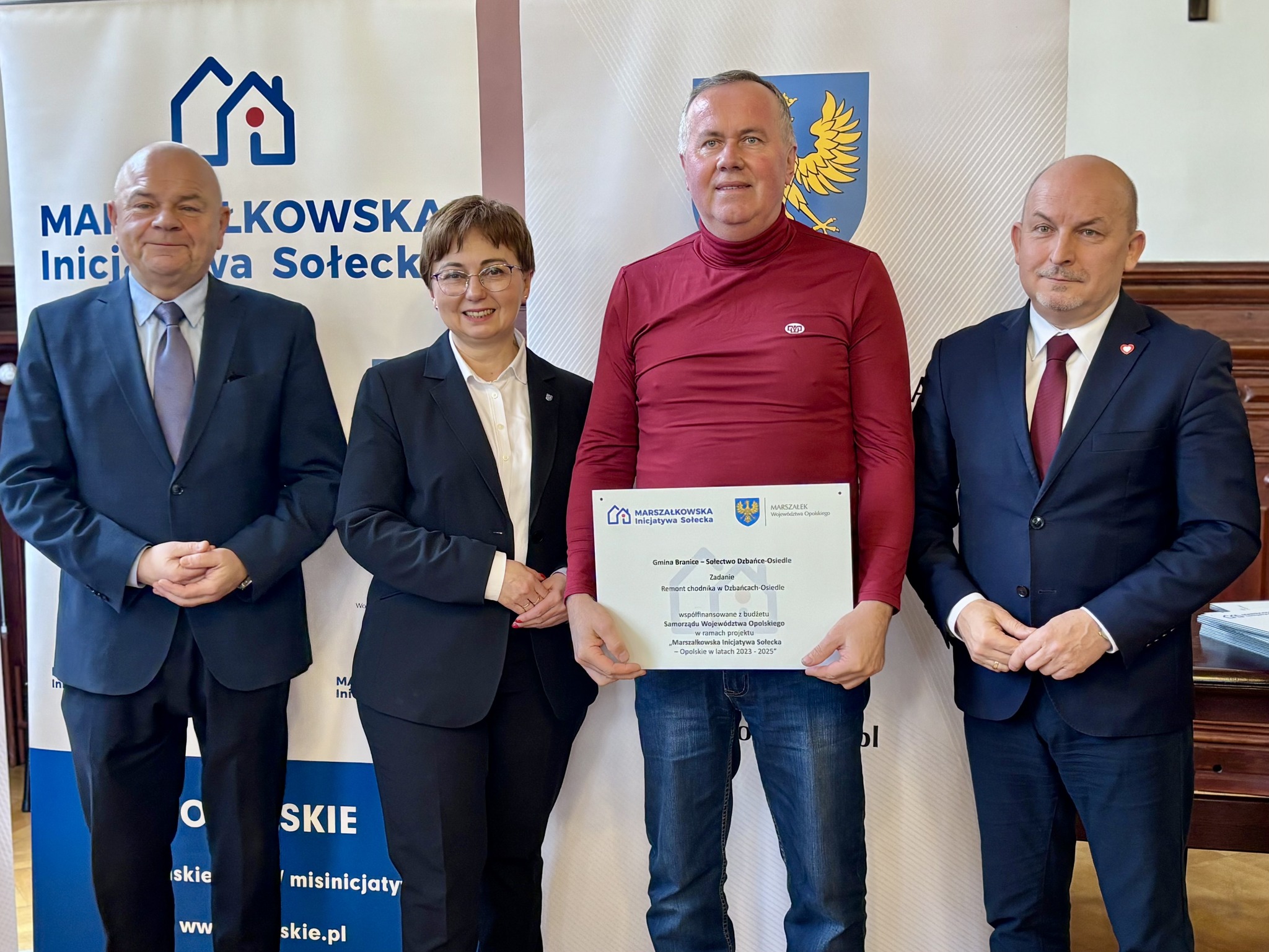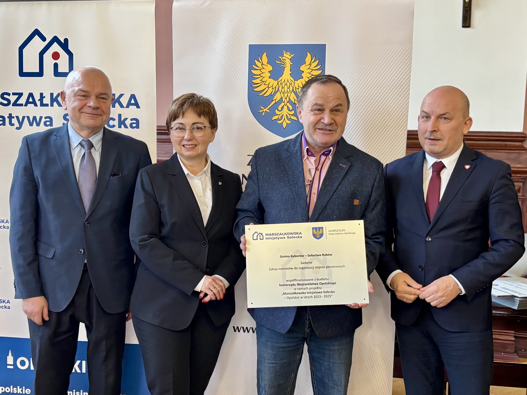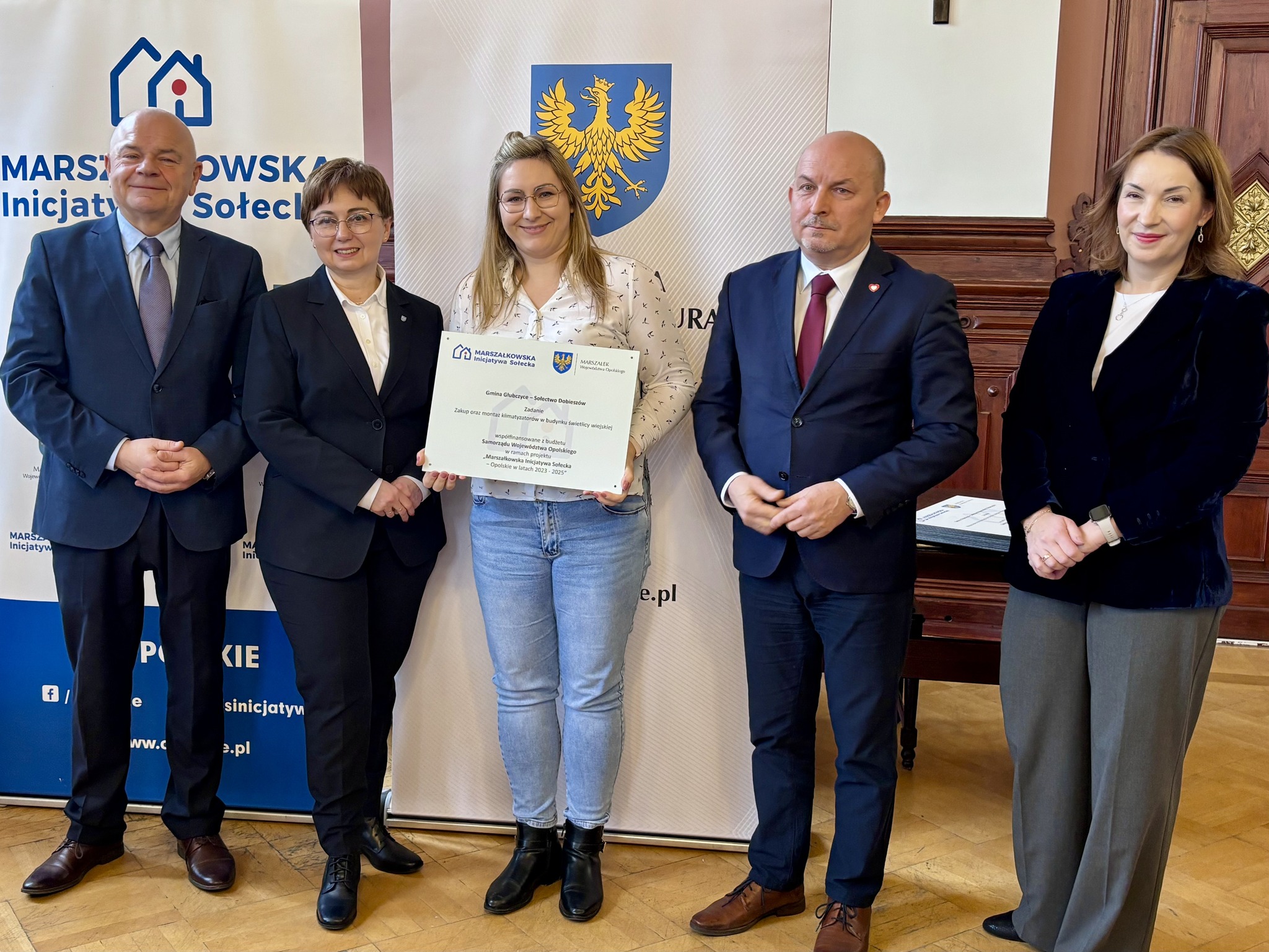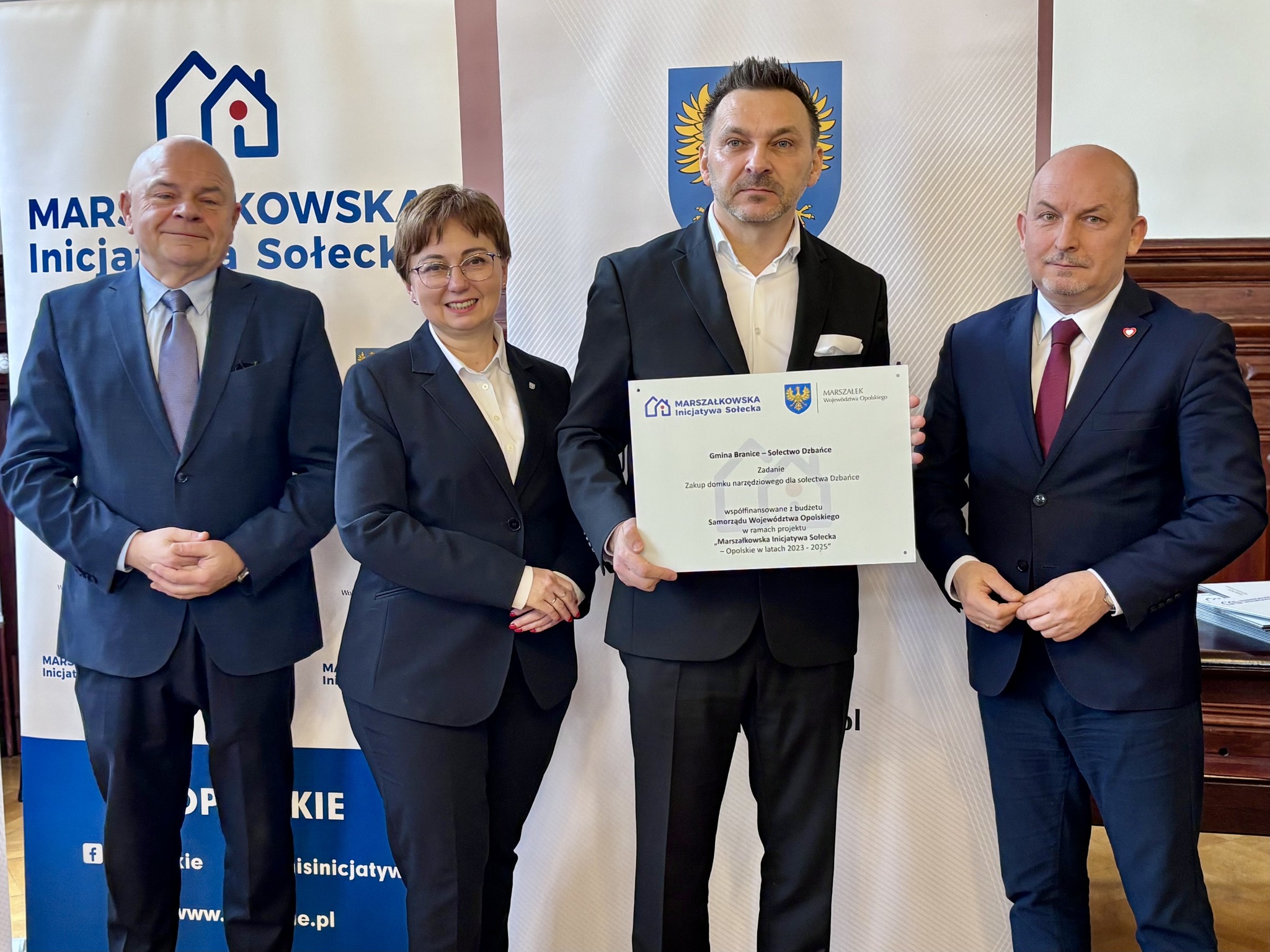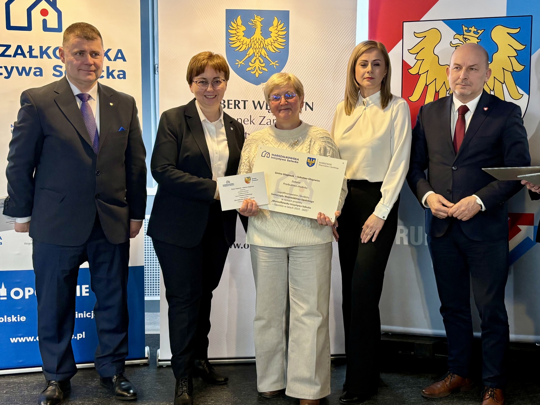 Podczas spotkania z przedstawicielami sołectw z powiatów głubczyckiego i prudnickiego wręczono pamiątkowe tabliczki – symboliczne, ale ważne. Domykają realizację projektów i zostają w przestrzeni wsi jako cichy dowód, iż coś zostało zrobione wspólnie: przez mieszkańców, samorządy i województwo.