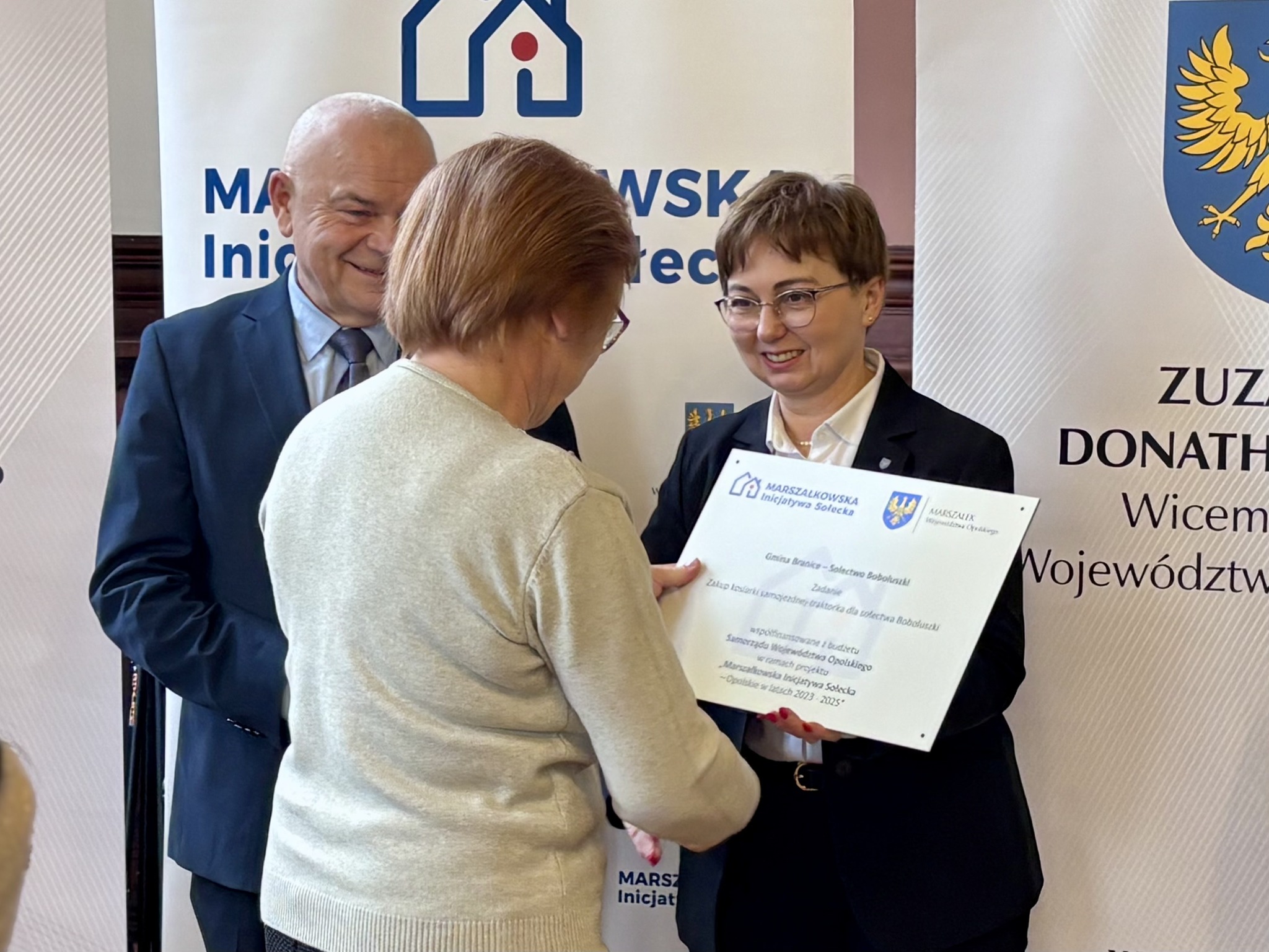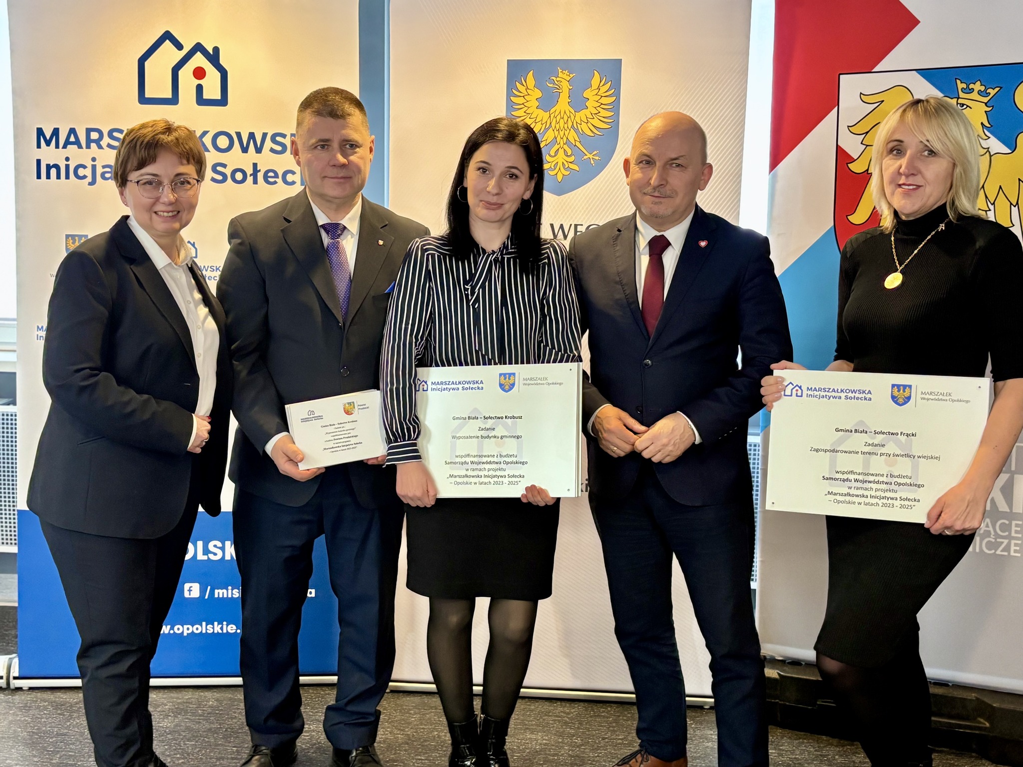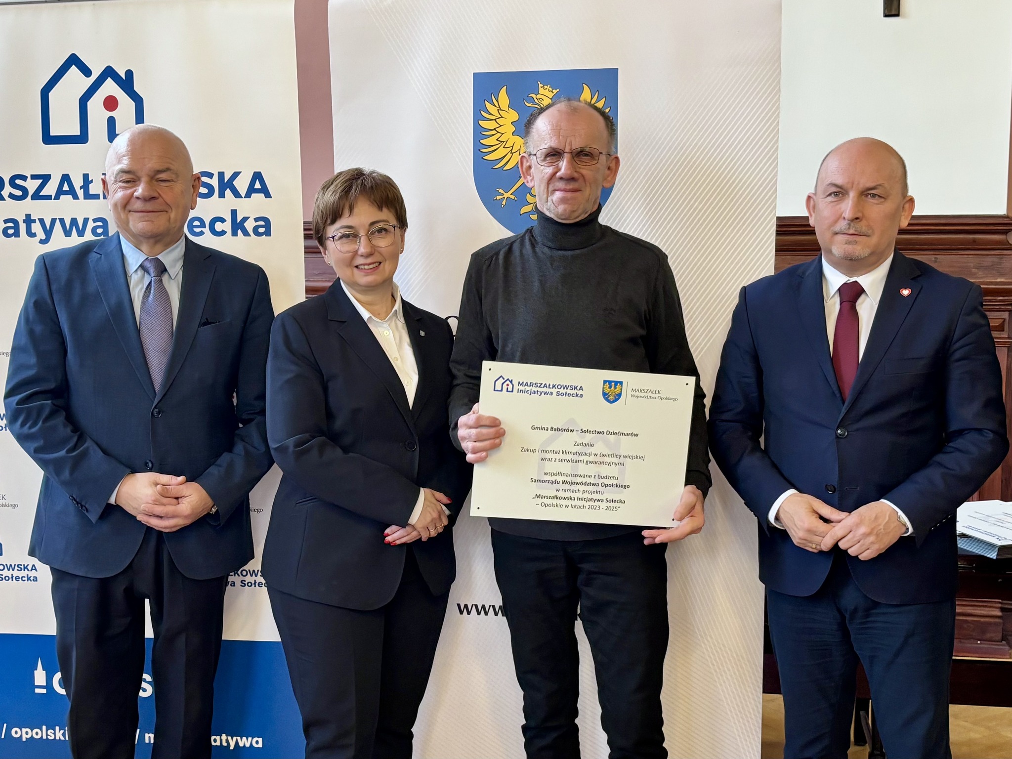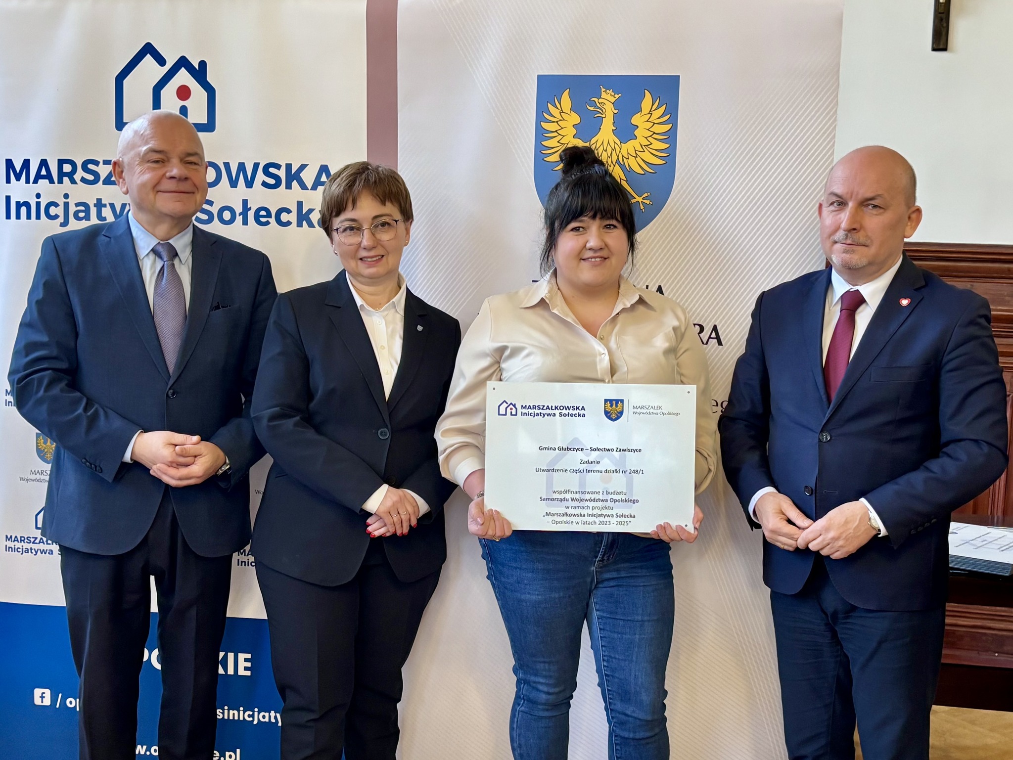 Podczas spotkania z przedstawicielami sołectw z powiatów głubczyckiego i prudnickiego wręczono pamiątkowe tabliczki – symboliczne, ale ważne. Domykają realizację projektów i zostają w przestrzeni wsi jako cichy dowód, iż coś zostało zrobione wspólnie: przez mieszkańców, samorządy i województwo.