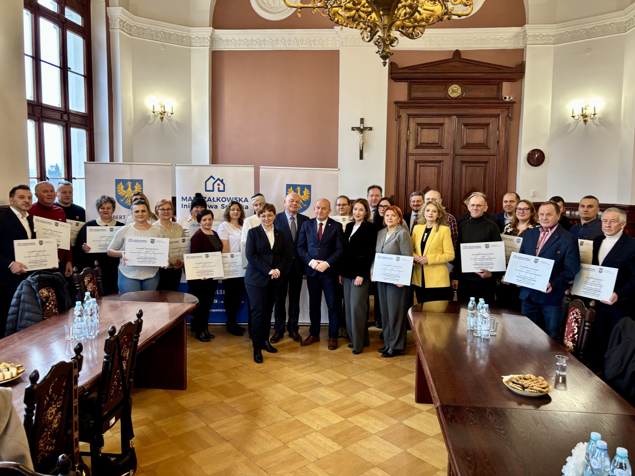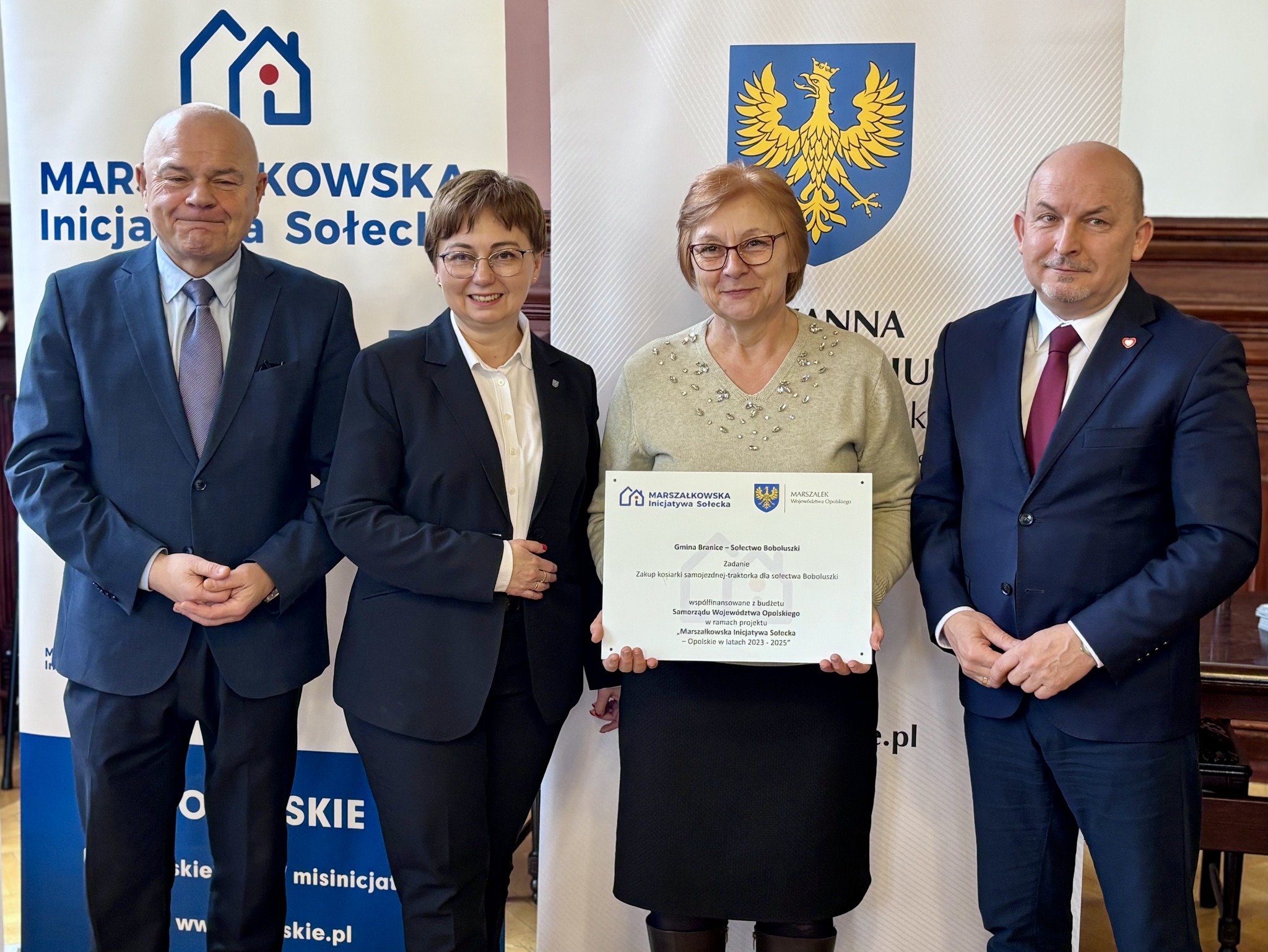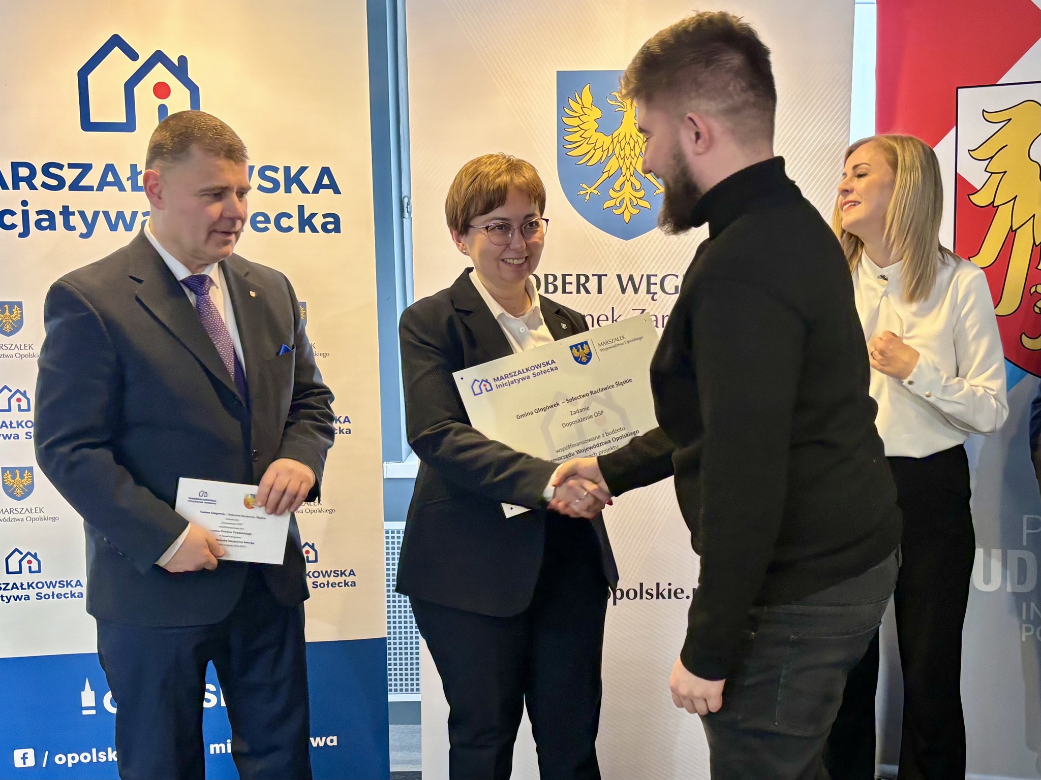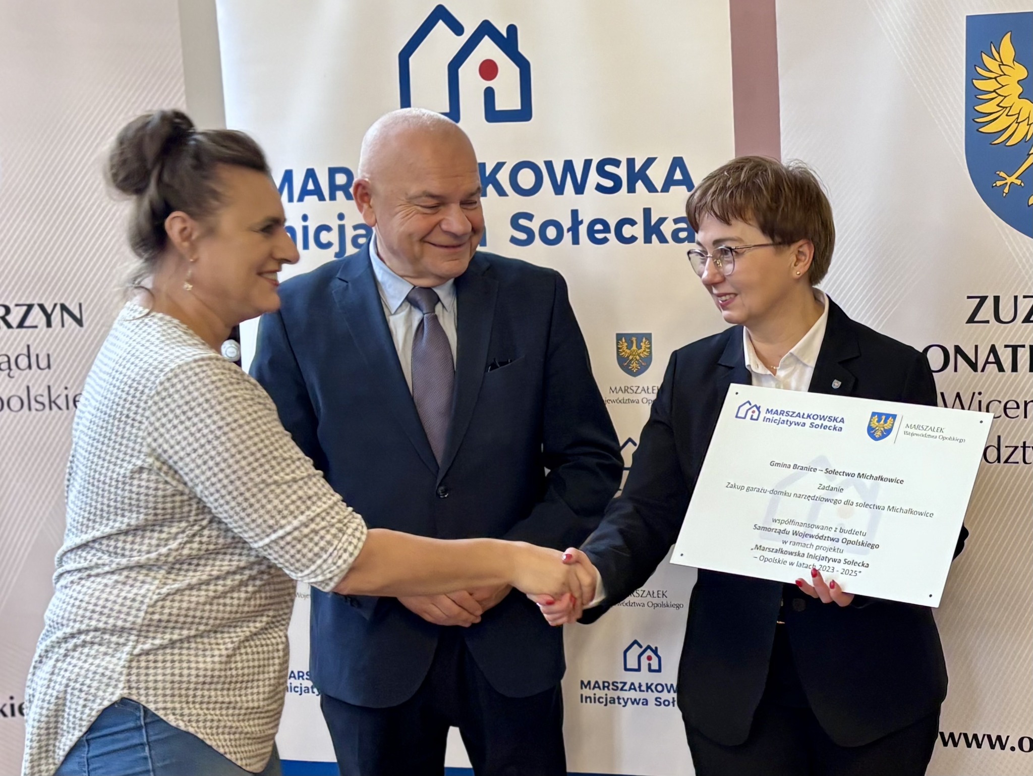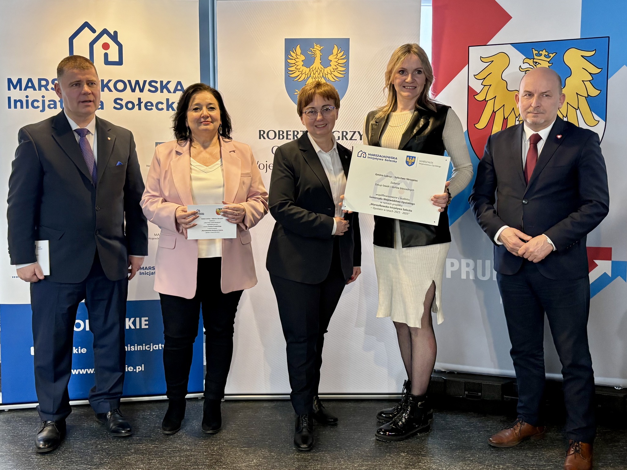 Podczas spotkania z przedstawicielami sołectw z powiatów głubczyckiego i prudnickiego wręczono pamiątkowe tabliczki – symboliczne, ale ważne. Domykają realizację projektów i zostają w przestrzeni wsi jako cichy dowód, iż coś zostało zrobione wspólnie: przez mieszkańców, samorządy i województwo.