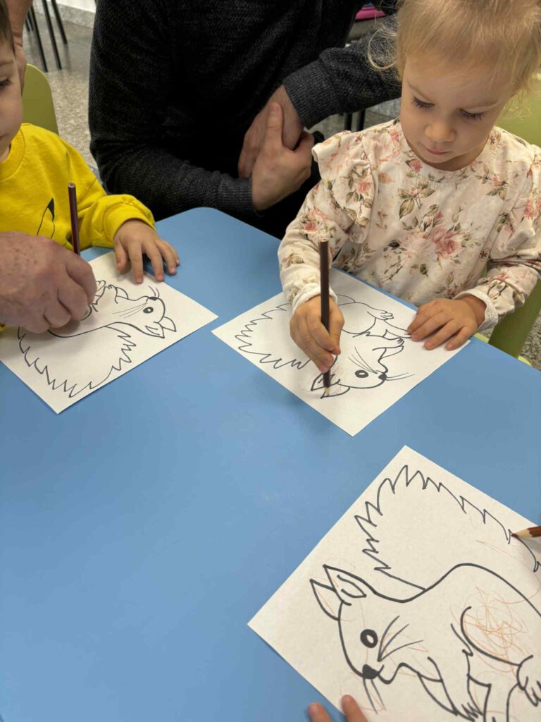 Maluch w bibliotece i wiewiórki