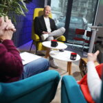 Audycja „Dzień dobry, to ja! Rozmowy inne niż wszystkie w Radiu Kielce”. Na zdjęciu (od lewej): dziennikarze Radia Kielce Magdalena Galas-Klusek i Paweł Solarz oraz Mateusz Kalisz – kielczanin, popularyzator astronomii i twórca kanału „AstroLife” / Fot. Wiktor Taszłow – Radio Kielce