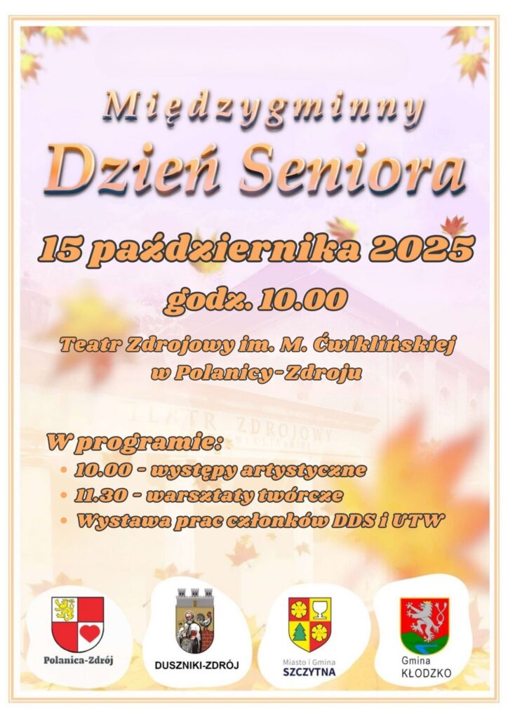 15 października w Teatrze Zdrojowym im. M. Ćwiklińskiej w Polanicy-Zdroju zorganizowany zostanie Międzygminny Dzień Seniora. W programie m.in. występy artystyczne, warsztaty twórcze i wystawa prac członków DDS i UTW.