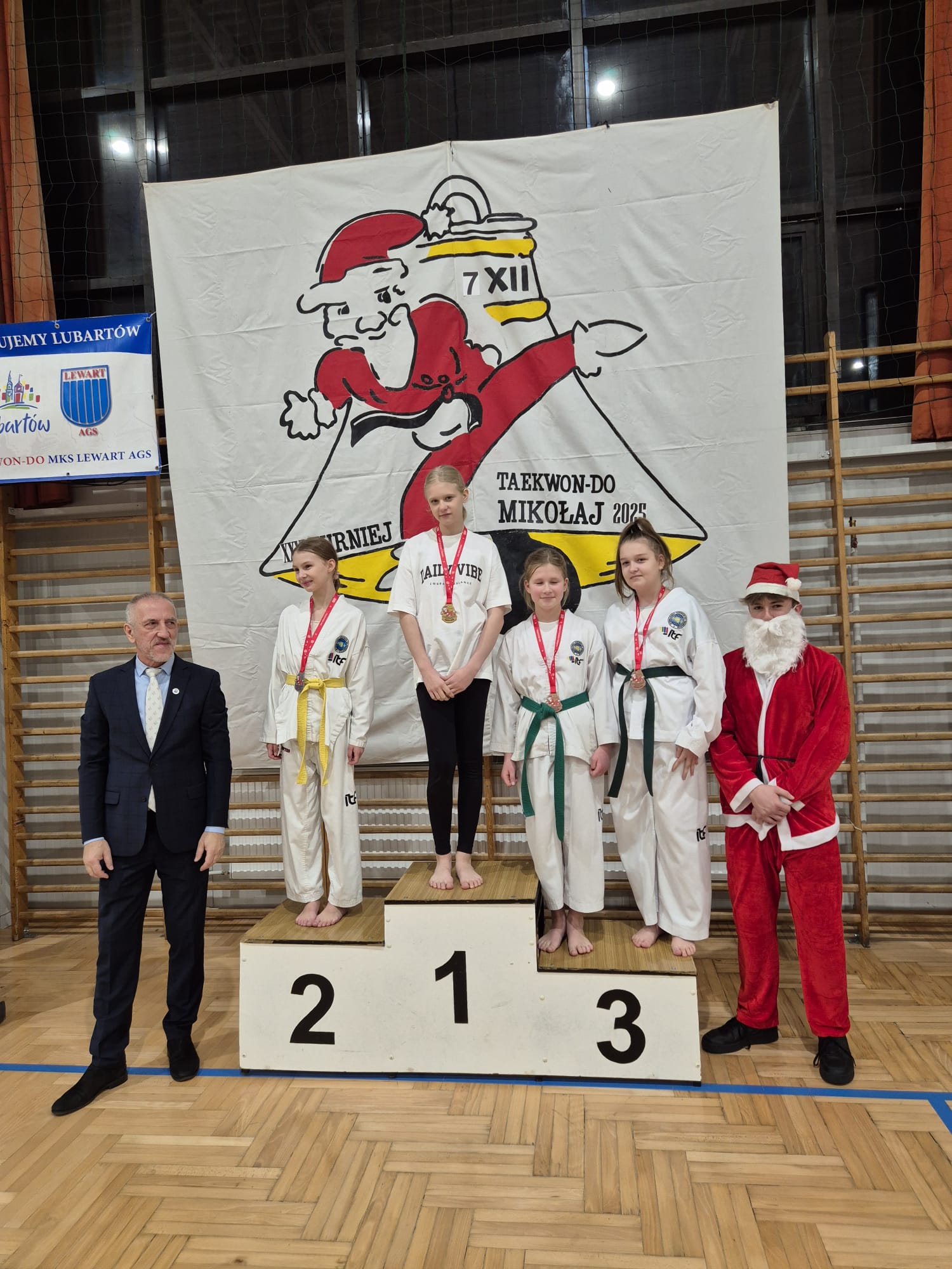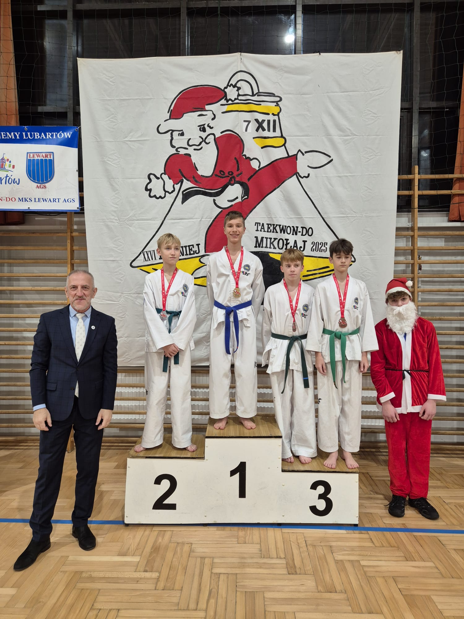 W niedzielę 7 grudnia w hali sportowej Zespołu Szkół nr 2 w Lubartowie liczna grupa młodych adeptów taekwon-do z Miejskiego Klubu Sportowego „Lewart” AGS Lubartów wzięła udział w XXVI edycji turnieju mikołajkowego. Jest to cykliczna impreza organizowana dla wszystkich trenujących z Lubartowa, Kamionki, Skrobowa i Pałecznicy. Podopieczni Jerzego Jeduta, Jarosława Suski, Anity Pasek-Suska, Mariusza Suski i Agnieszki Misztal walczyli o medale w układach formalnych, technikach specjalnych i kopnięciach na czas. Łącznie do rozdania było 17 kompletów medali.