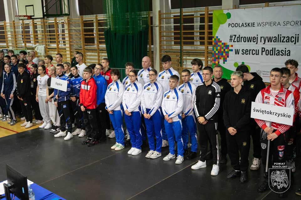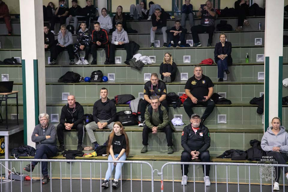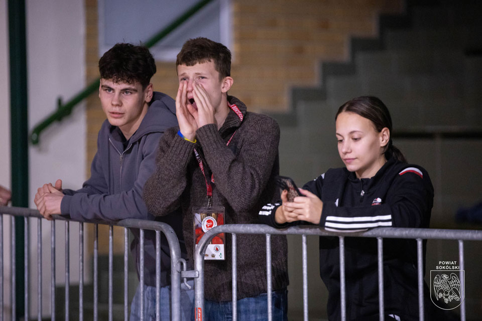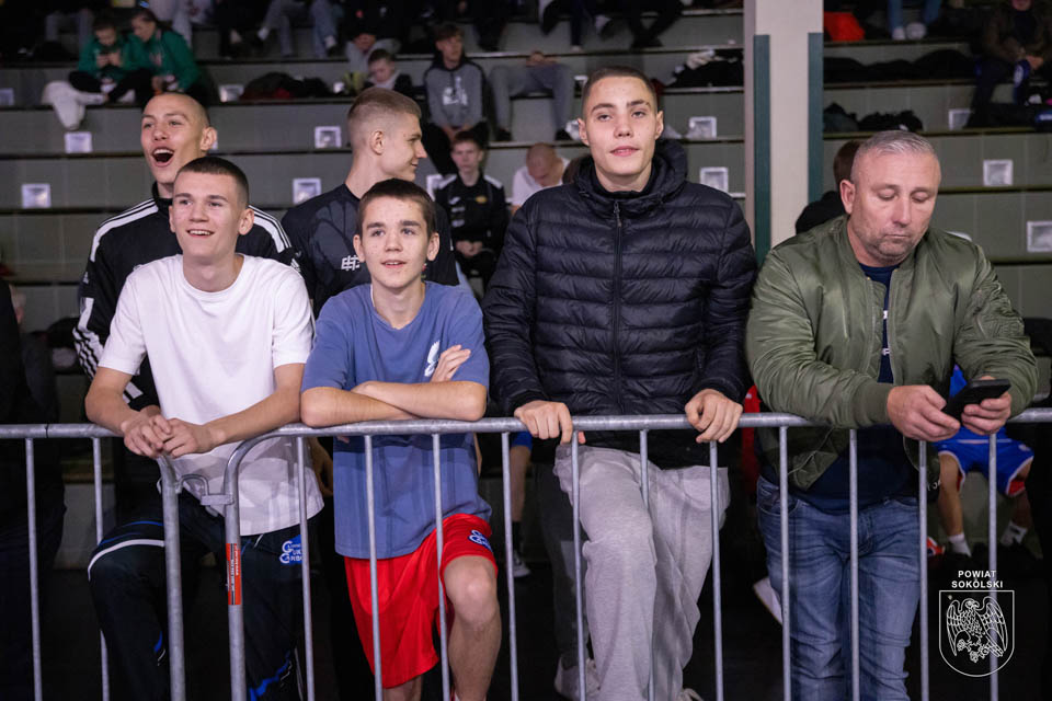Atmosfera w hali sportowej w Sokółce jest niezwykle gorąca – licznie zgromadzona publiczność z entuzjazmem wspiera młodych sportowców, tworząc wyjątkowy klimat tego wydarzenia.