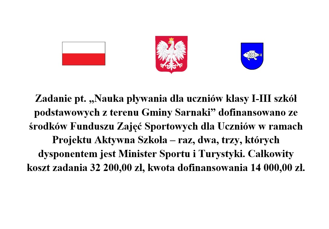 - Nauka pływania dla uczniów klasy I-III szkół podstawowych z terenu Gminy Sarnaki