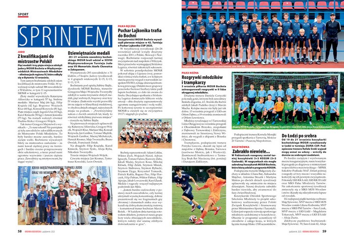 „Sprintem” to między innymi informacje o sukcesach judoków, którzy we wrześniu na Międzywojewódzkich Mistrzostwach Młodzików w Bytomiu zdobyli osiem kwalifikacji do Mistrzostw Polski. Można przeczytać też o młodzieżowych grupach szczypiornistów, piłkarzy, a także koszykarek trenujących w MOSiR.