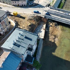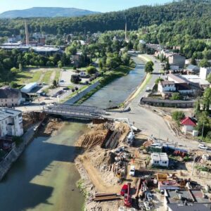 Przypomnijmy, iż poprzedni most, który powstawał w Głuchołazach do jesieni 2024 roku posiadał betonową podporę w korycie rzeki. Wykonawca zrealizował ją zgodnie z ówczesnym projektem. Ale potem przyszła powódź, a obecność podpory była jednym z czynników, który w połączeniu ze zniszczeniem sąsiedniej przeprawy tymczasowej do spiętrzenia wód w tym miejscu.
