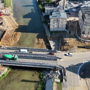 Nowy etap budowy mostu w Głuchołazach – tymczasowe podpory w korycie rzeki