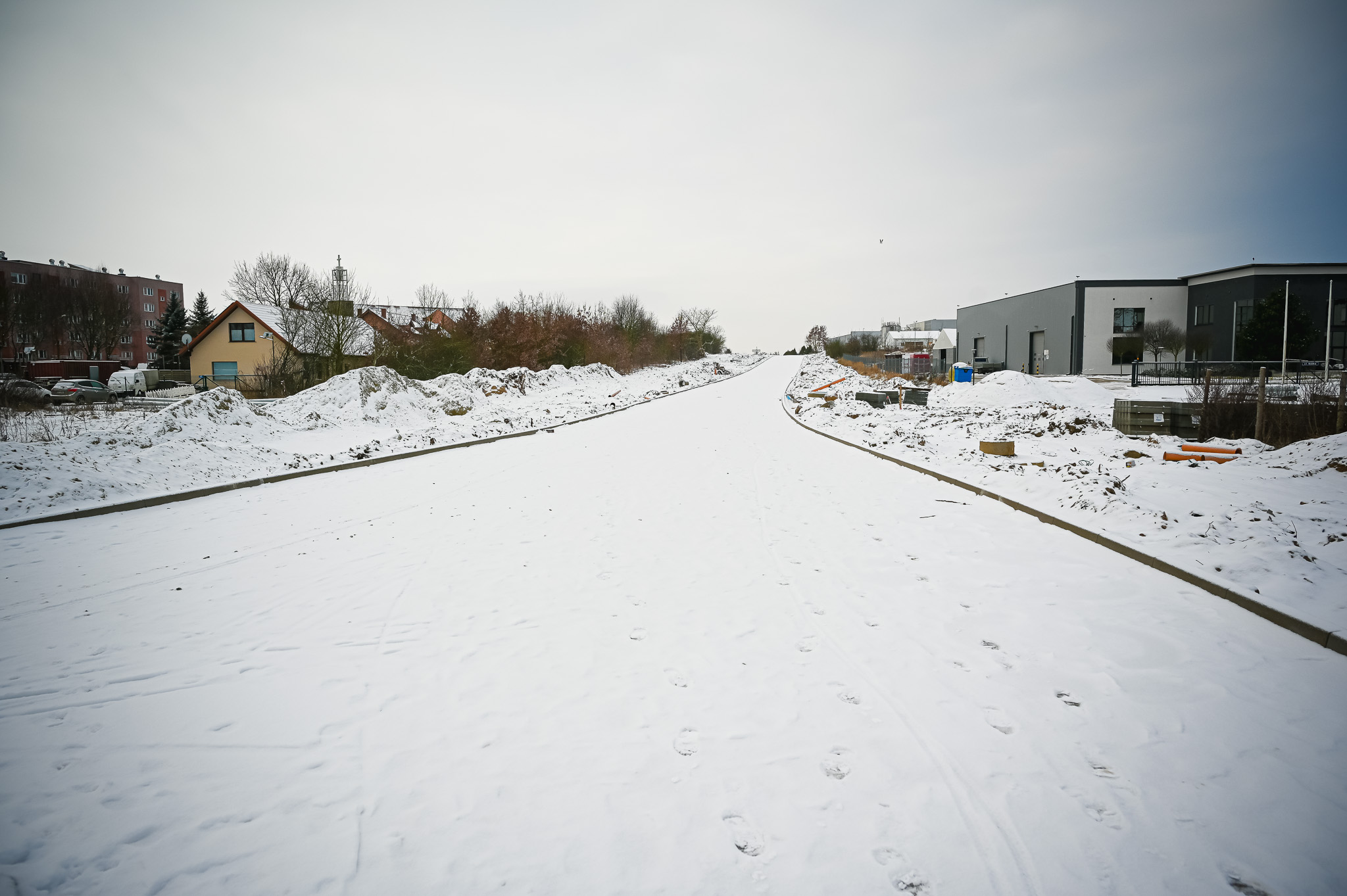 Chociaż na pierwszy rzut oka krajobraz wydaje się być nieco uśpiony, pod cienką warstwą śniegu coraz wyraźniejszych kształtów nabiera kolejny odcinek obwodnicy północnej. Na fragmencie w ciągu ul. Hanzeatyckiej, od ul. Stralsundzkiej do ul. H. Wieniawskiego są już położone wszystkie warstwy konstrukcyjne. Wiosną przyjdzie czas na warstwę ścieralną oraz liczne nasadzenia zieleni. Droga będzie gotowa tym roku, a wraz z nią chodniki, ciąg pieszo-rowerowy, kanalizacja deszczowa i energooszczędne oświetlenie.