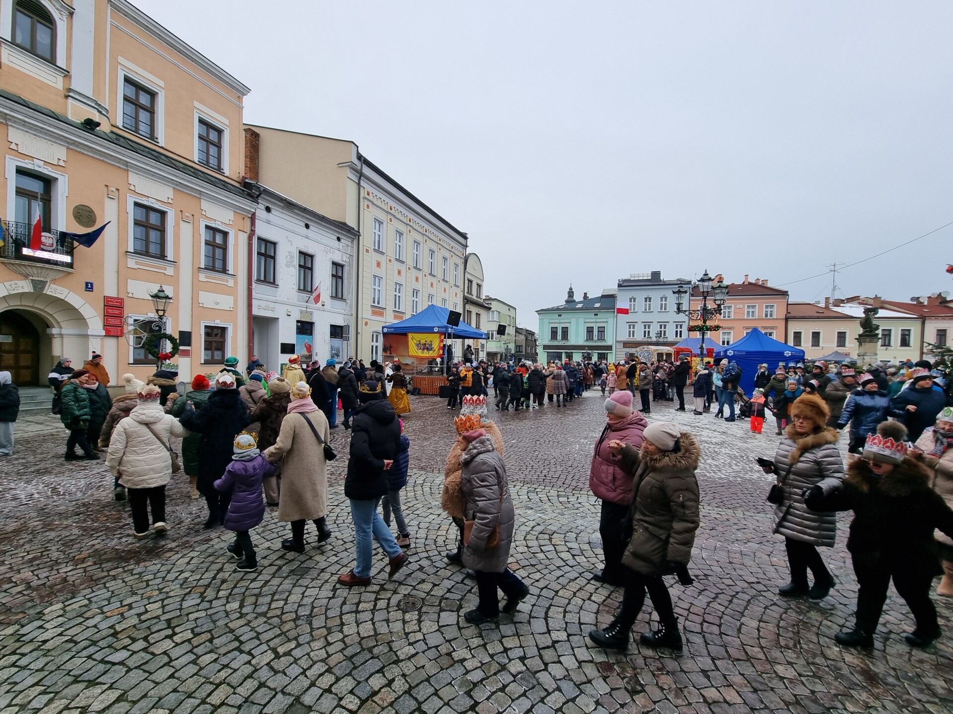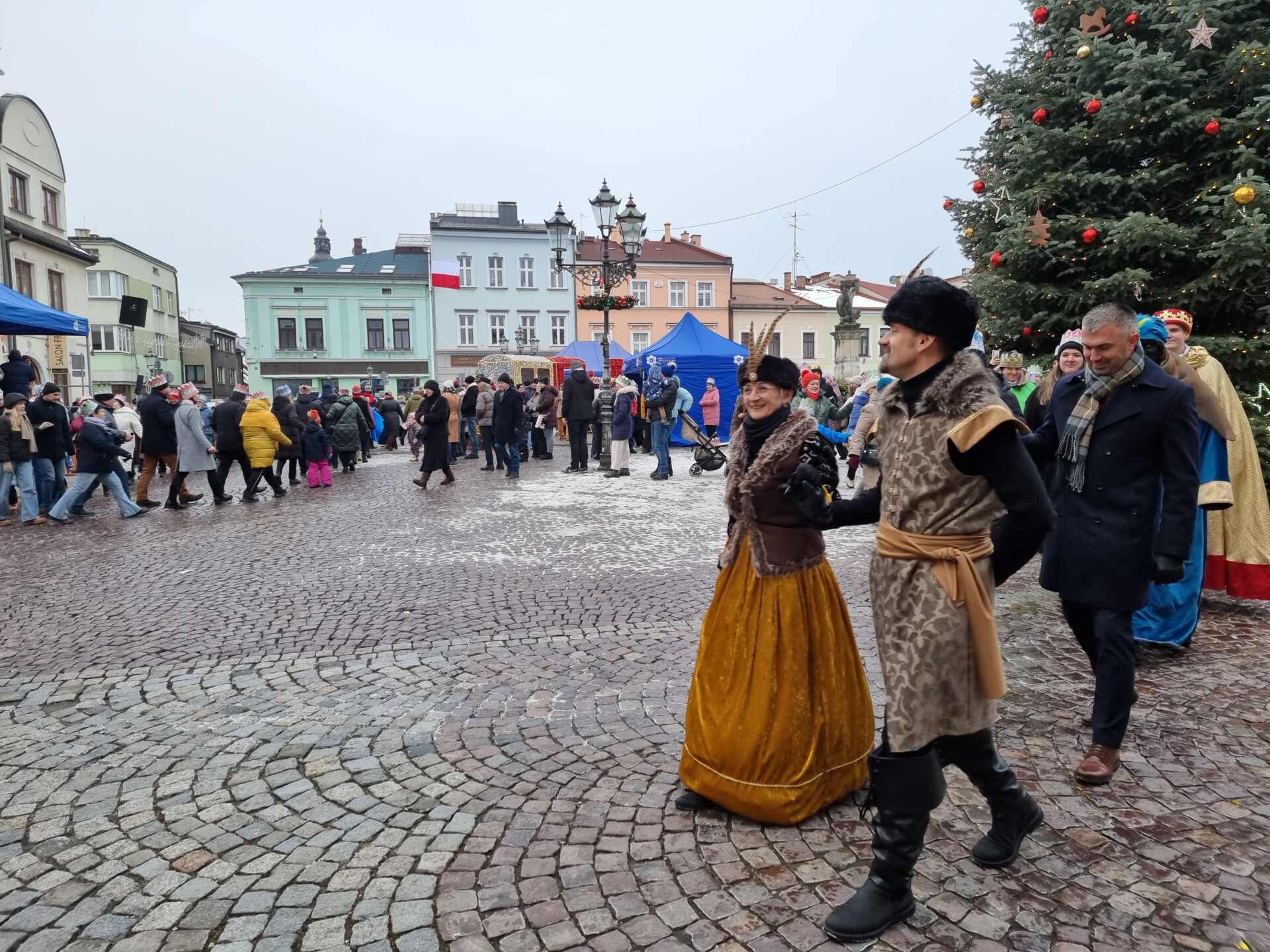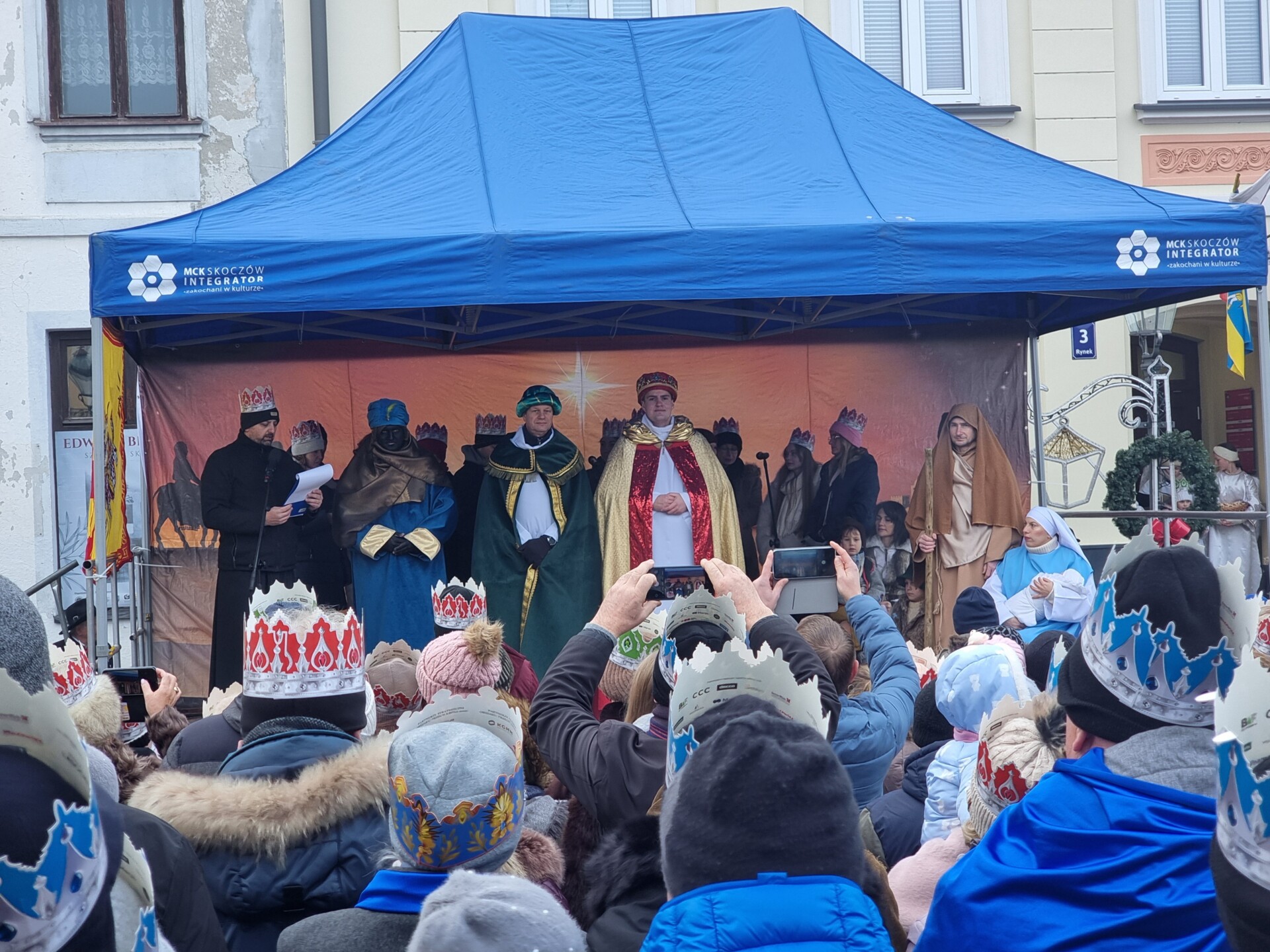 Wszystkie trzy spotkały się około godziny 14.00 na skoczowskim rynku, gdzie królowie oraz wszyscy zgromadzeni pokłonili się Jezusowi. Wspólne kolędowano, a na zakończenie zatańczono bożonarodzeniowego poloneza.