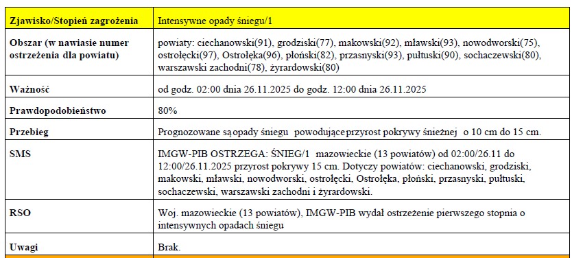 Ważność: od godz. 00:00 dnia 27.11.2025 do godz. 08:00 dnia 27.11.2025