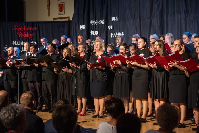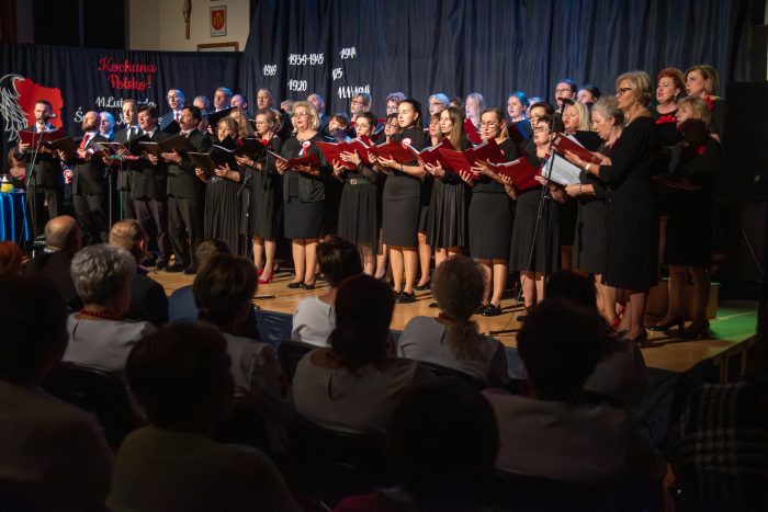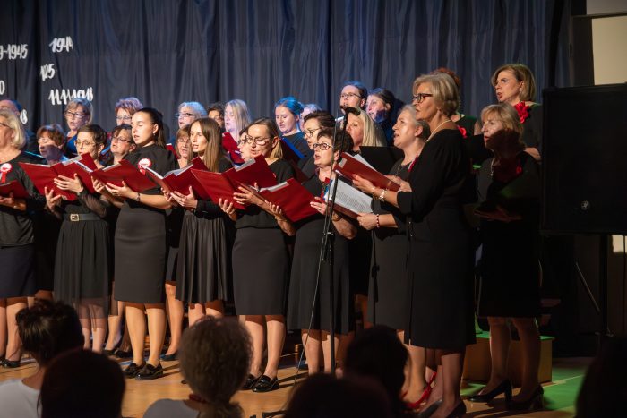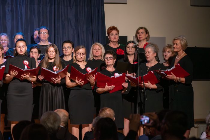 Między pieśniami patriotycznymi wybrzmiewały wiersze i teksty poetyckie w wykonaniu członków Klubu Miłośników Poezji z Zalasowej oraz uczennicy Zespołu Szkolno-Przedszkolnego w Zalasowej.